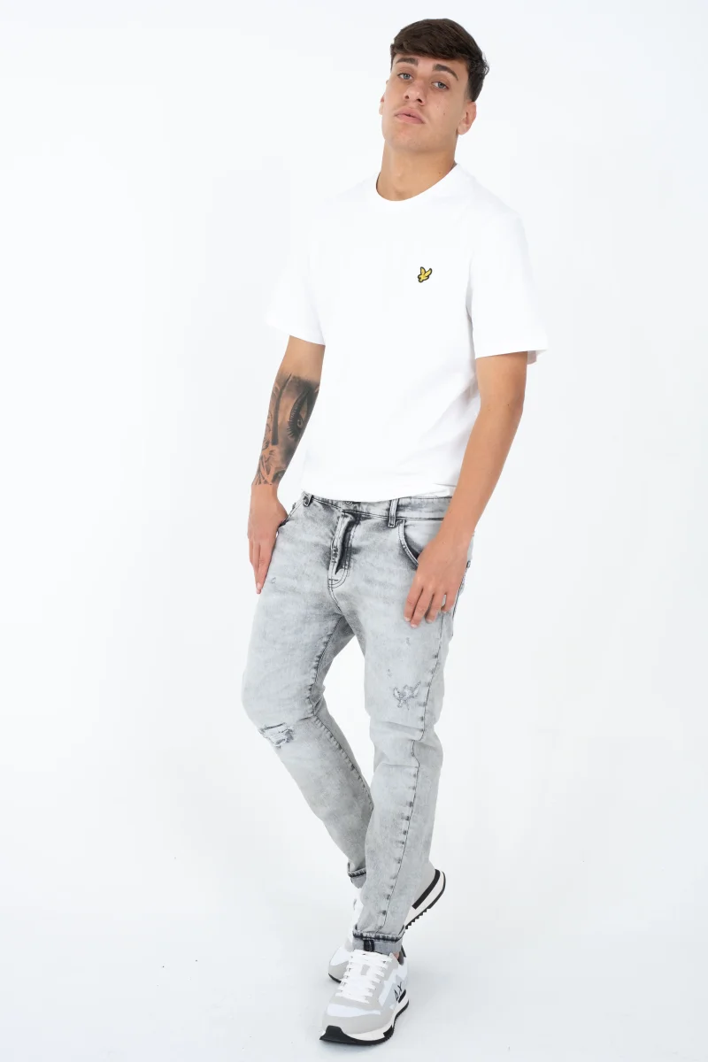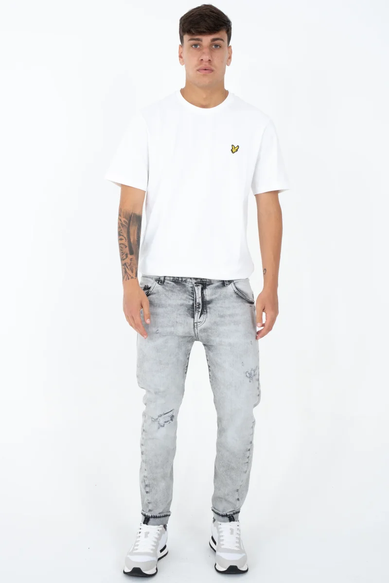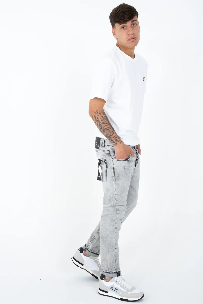 Jeans “Regular Fit”. Jeans denim resistente a gamba dritta vita media e chiusura con zip e bottone