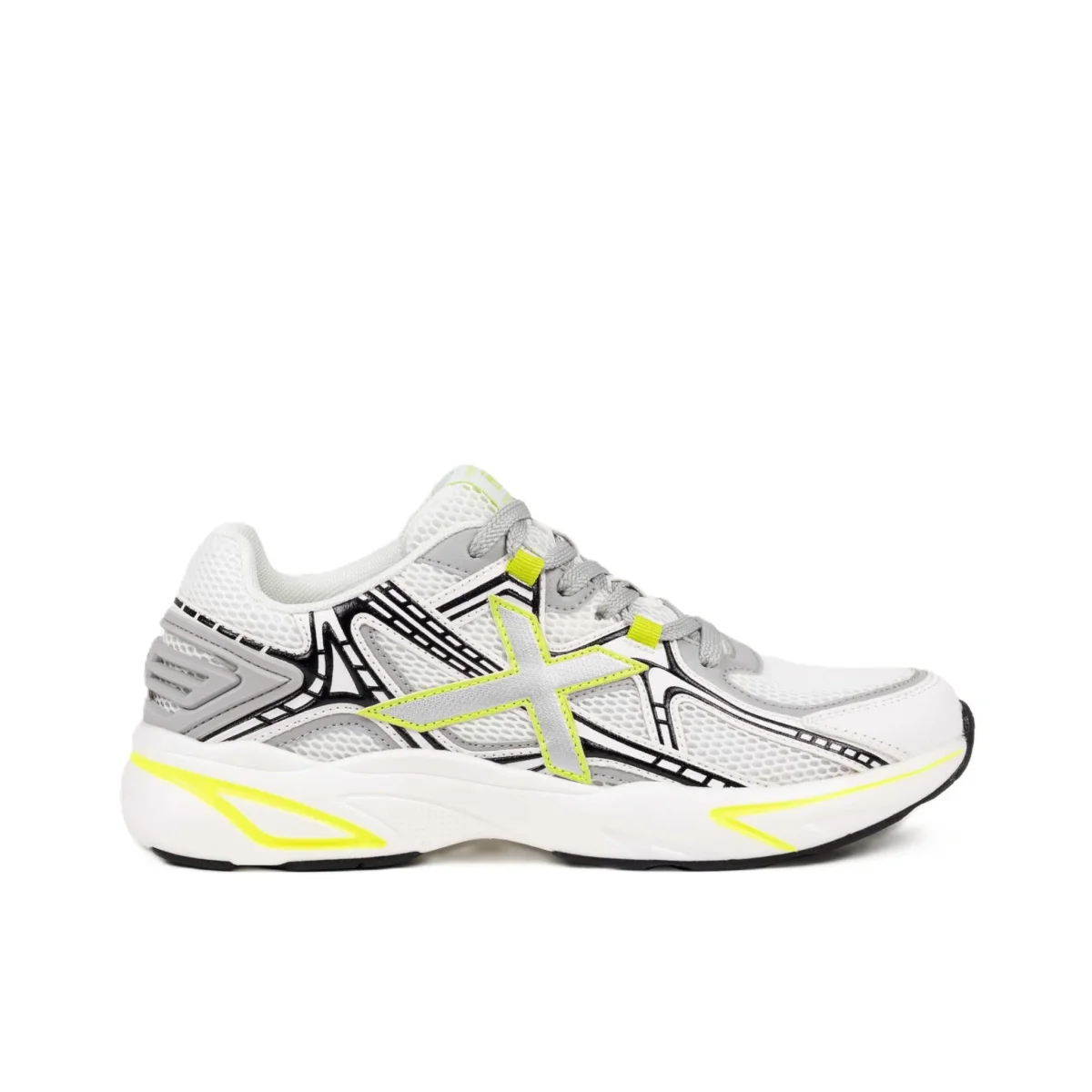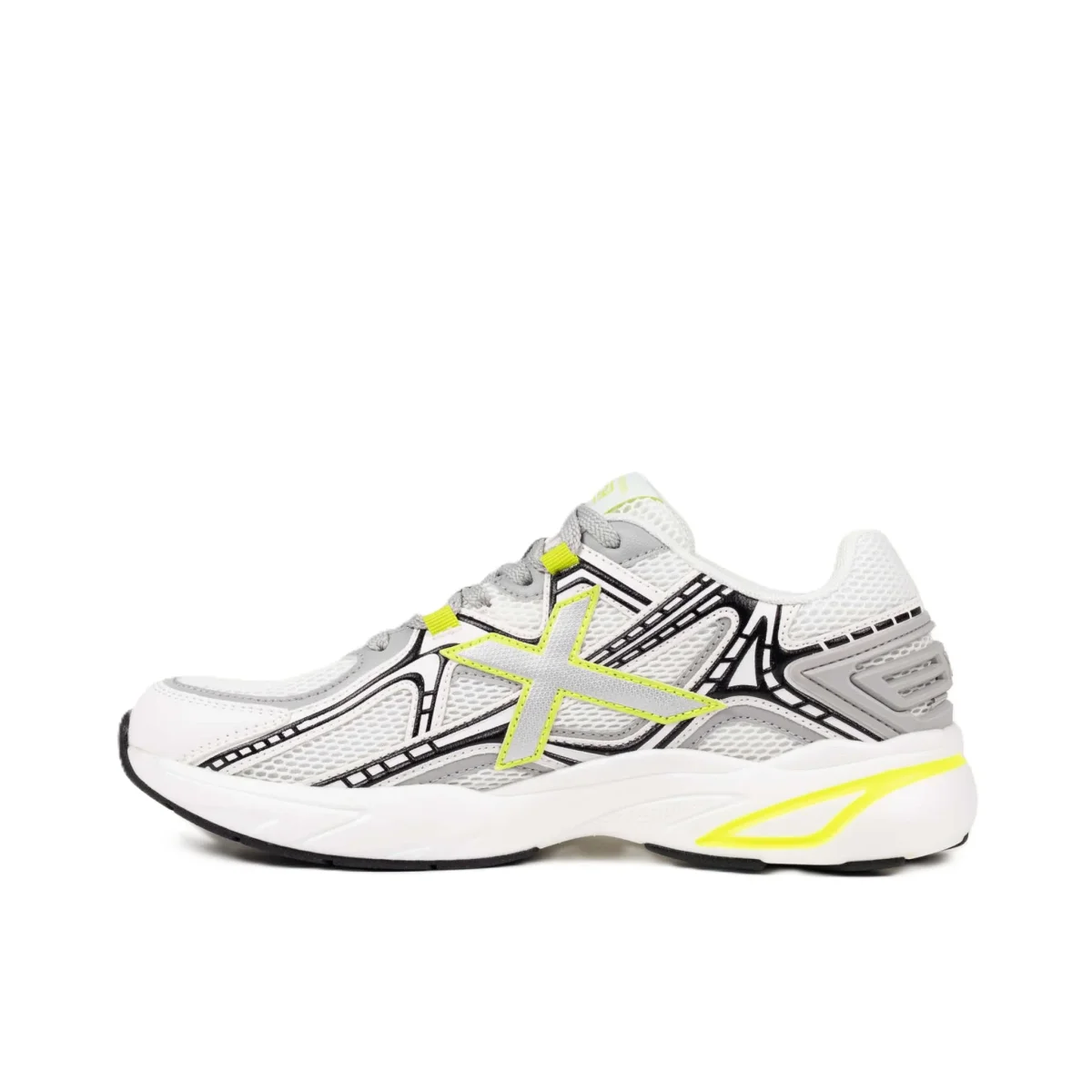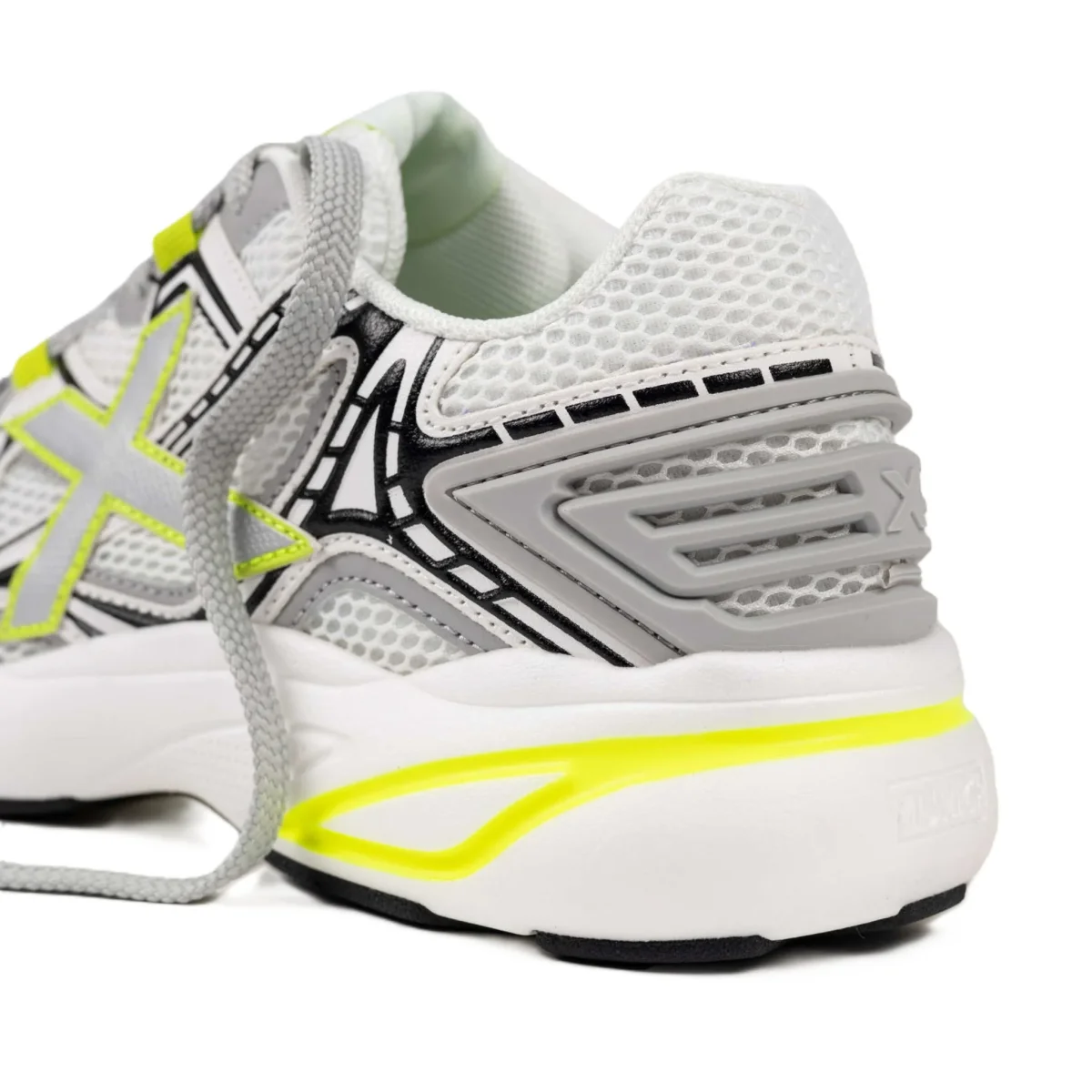 La M2000 รจ una sneaker in stile lifestyle che unisce comfort e design urbano attraverso una silhouette ispirata al running retrรฒ con un tocco contemporaneo. La sua struttura in mesh tecnico traspirante bianco รจ completata da rinforzi sintetici grigi e dettagli grafici neri che mettono in risalto l’iconica X laterale in una vibrante tonalitร giallo fluoro. L’intersuola voluminosa offre un’ammortizzazione eccezionale per l’uso quotidiano, rendendola la scelta perfetta per passeggiare in cittร , partecipare a eventi informali o completare un look sportivo con personalitร e freschezza.