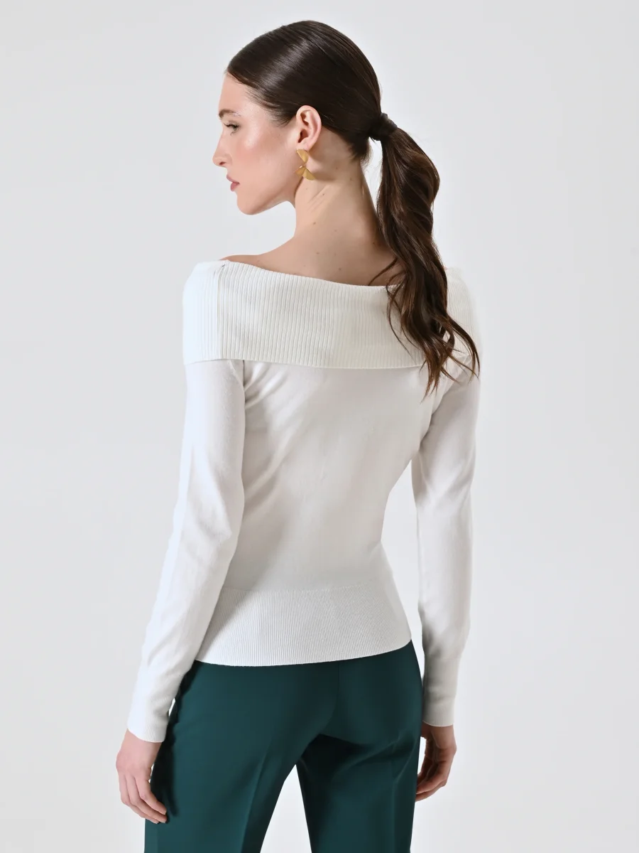 La Maglia con Collo Ribaltato รจ un capo essenziale del guardaroba femminile, ideale per creare look puliti e versatili durante la stagione piรน fresca.