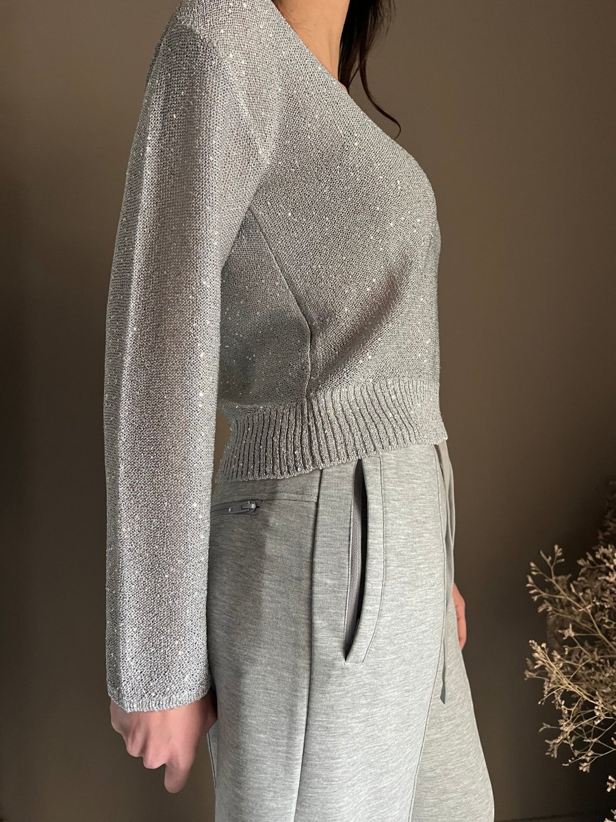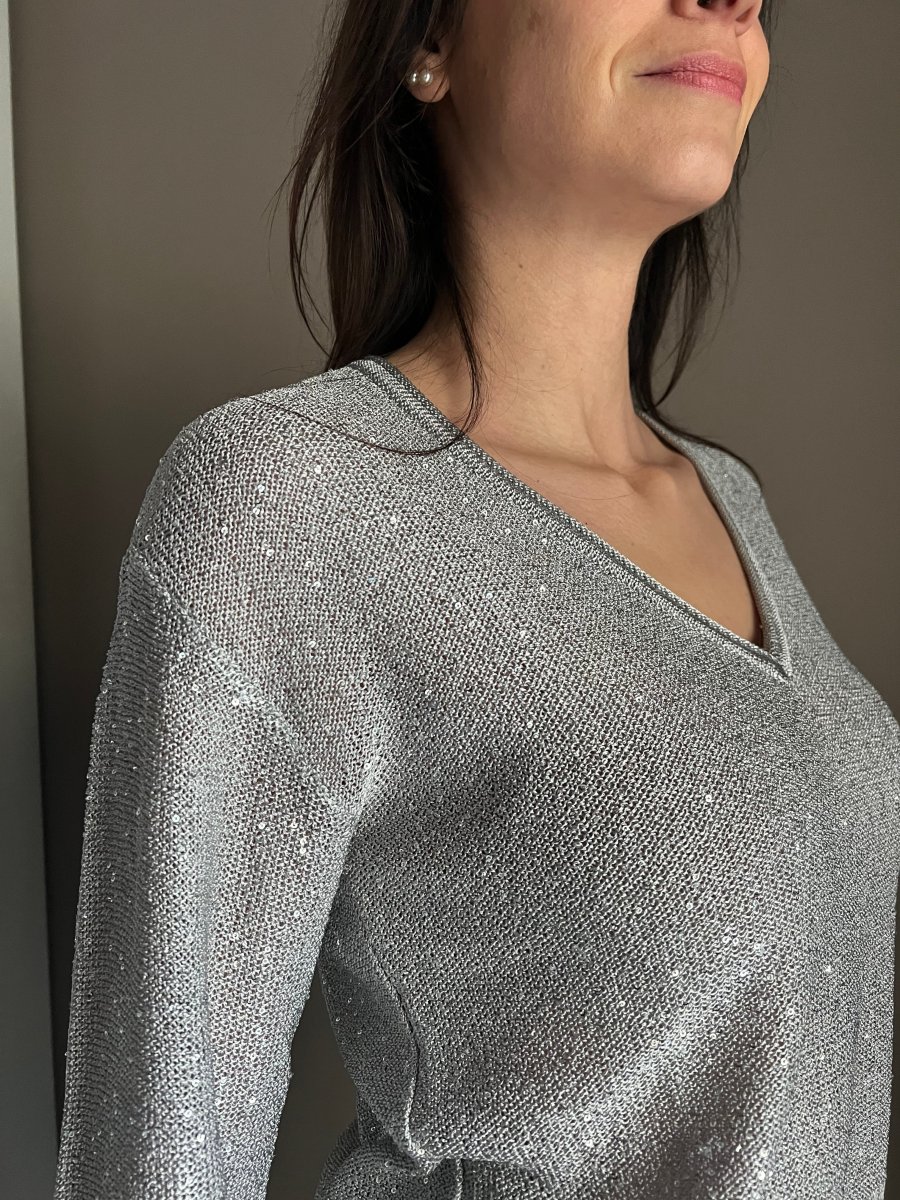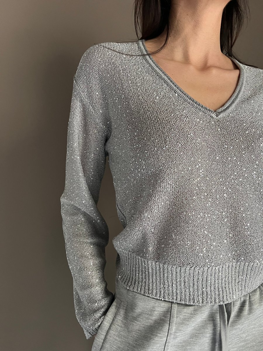 Maglia con scollo a V in paillettes