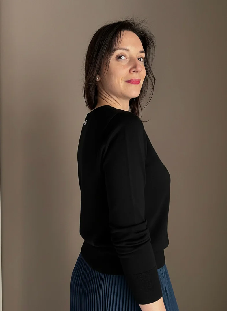 โข Vestibilitร : Taglia regolare, con un fit morbido che accarezza la figura senza costringerla.