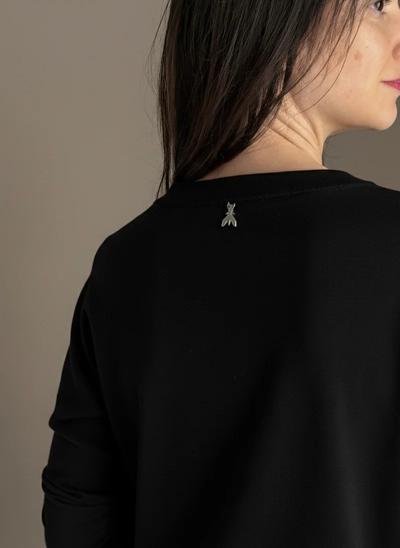 โข Design pulito: Il taglio girocollo e i polsini rifiniti a coste sottili esaltano la pulizia delle linee.