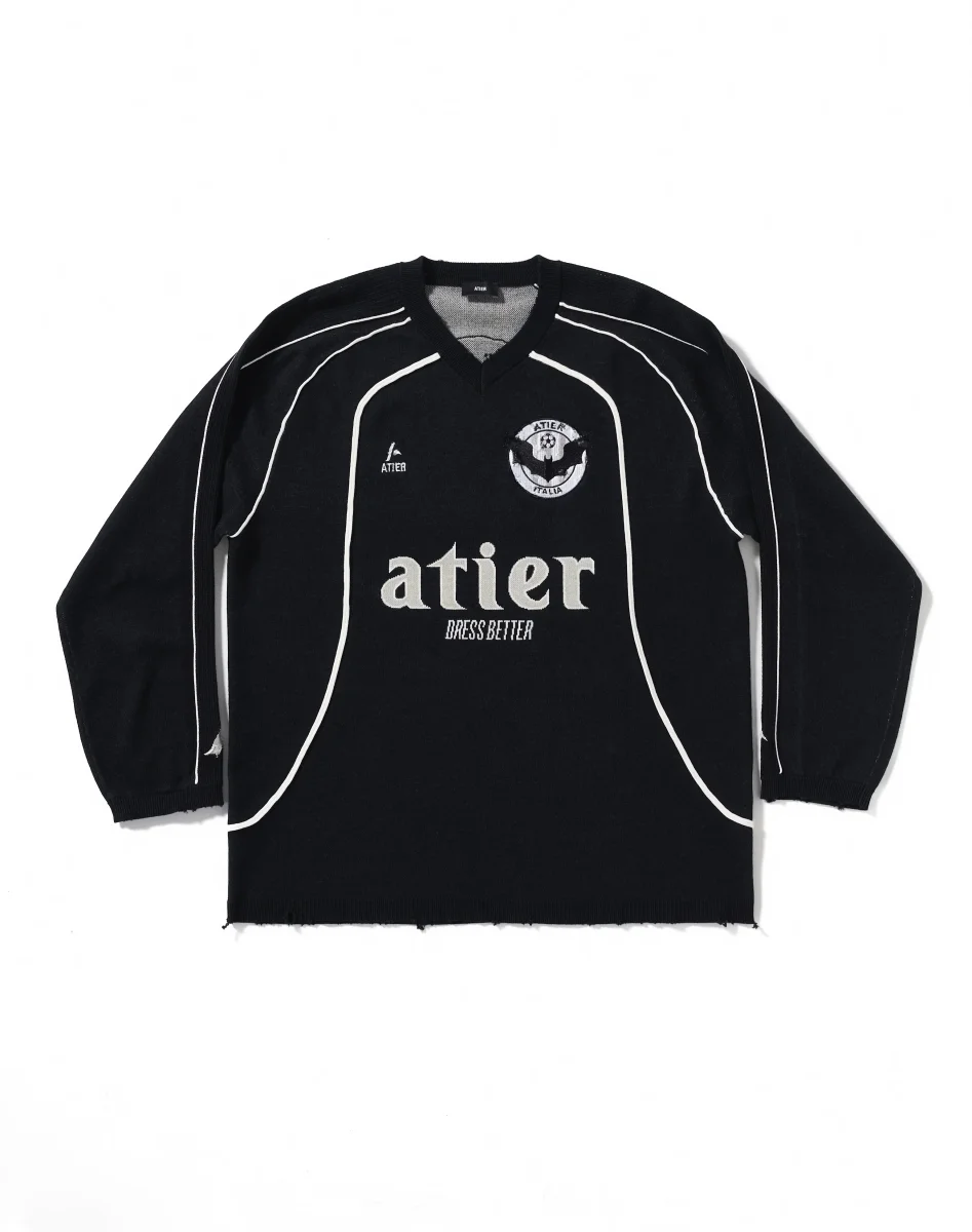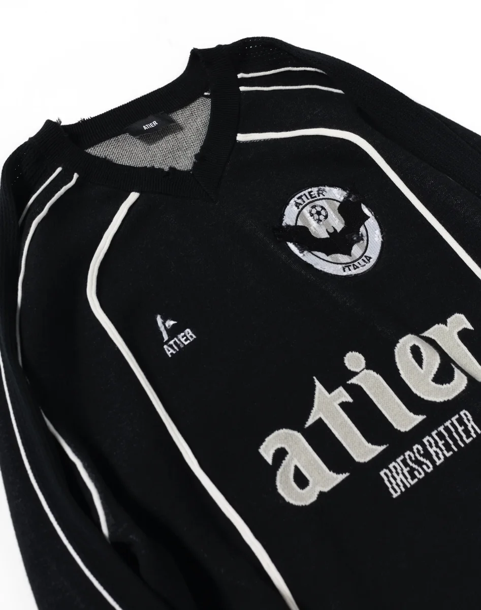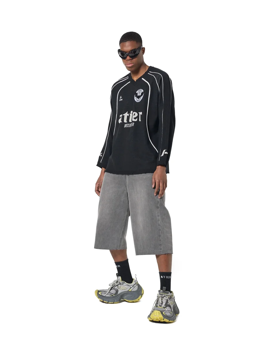 Maglia “Soccer” jacquard con ricami destroyed in 100% cotone