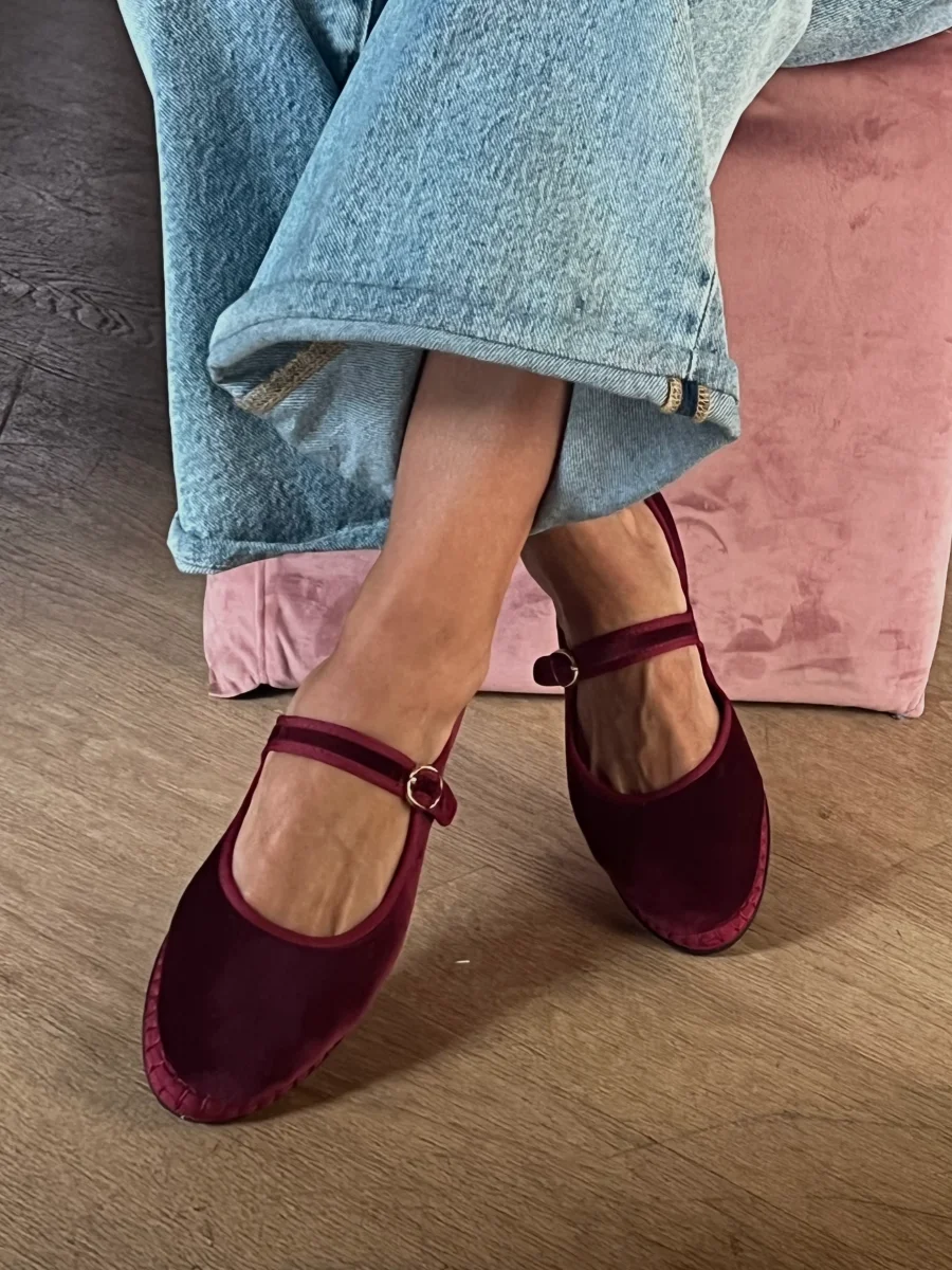 Mary Jane in velluto Bordeaux