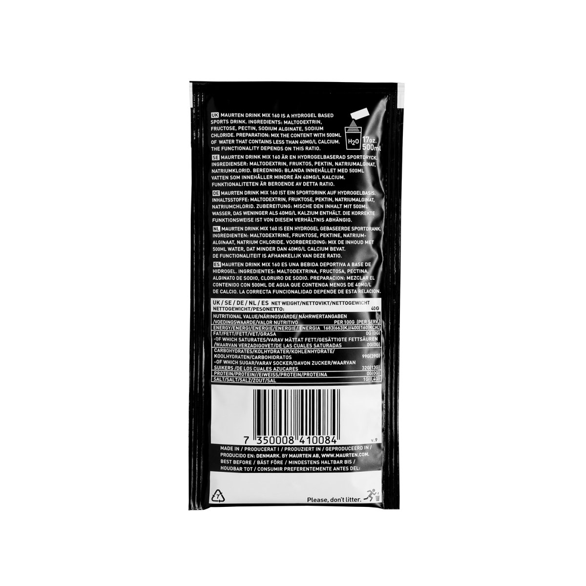 Maurten Drink Mix 160 is a carbohydrate fuel for endurance sports. An energy drink that becomes a hydrogel in the stomach. 40 grams of carbohydrates. Suitable for Vegetarians & Vegans.