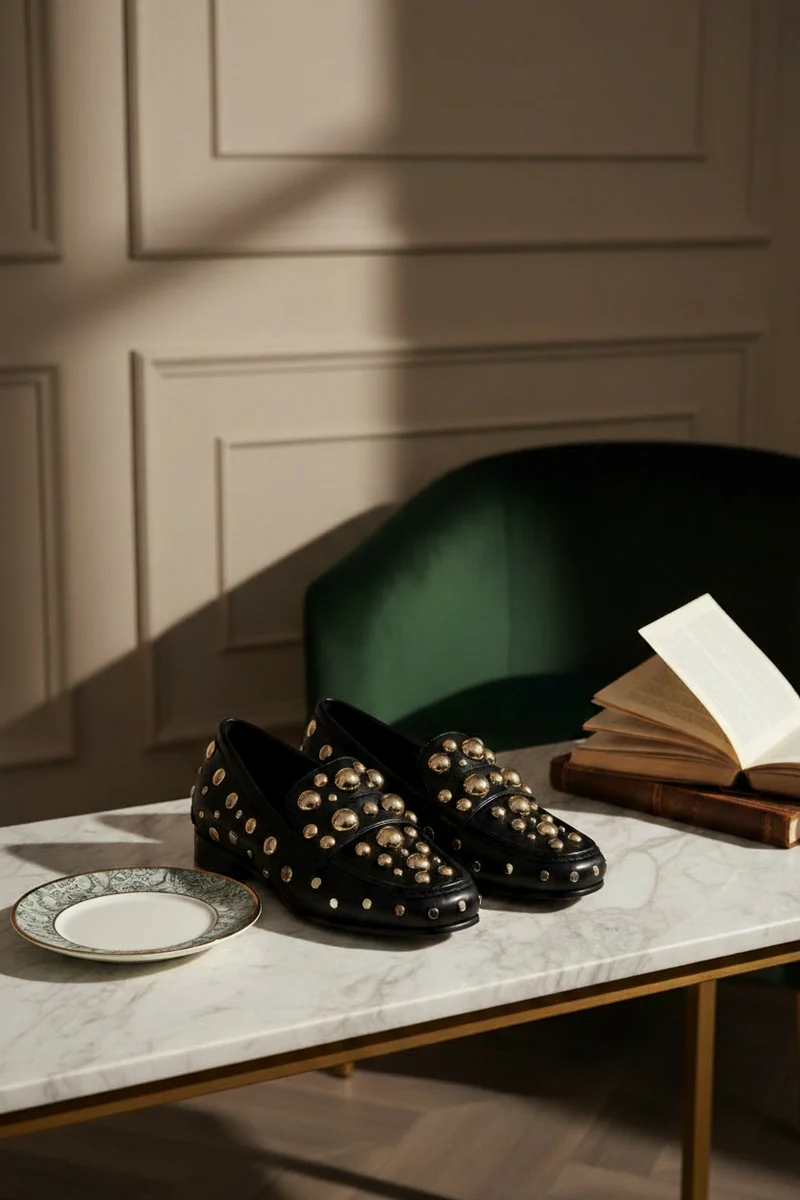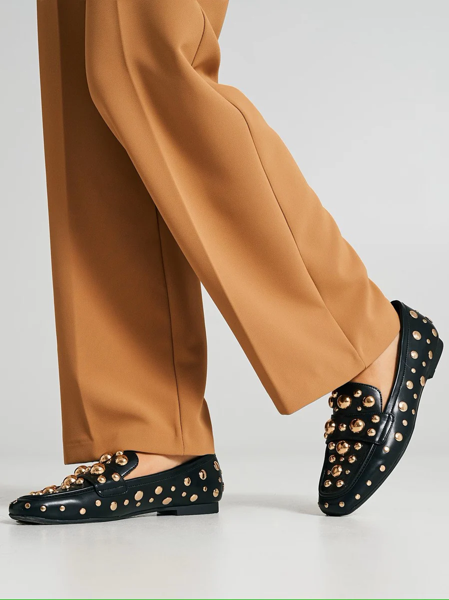 I mocassini similpelle bolle da donna, sono un modello di scarpa versatile e alla moda, perfetto per ogni occasione. Sono realizzati in similpelle liscia, 100% cruelty free, e sono impreziositi da borchie a bolla di diverse dimensioni. Per un look casual, abbinali a jeans o pantaloni a sigaretta e una t-shirt o una felpa. Per un look piรน formale, abbinali a pantaloni a gamba dritta o a un tailleur e una camicia o una blusa. Per un look piรน trendy, abbinali a una gonna o a un vestito.