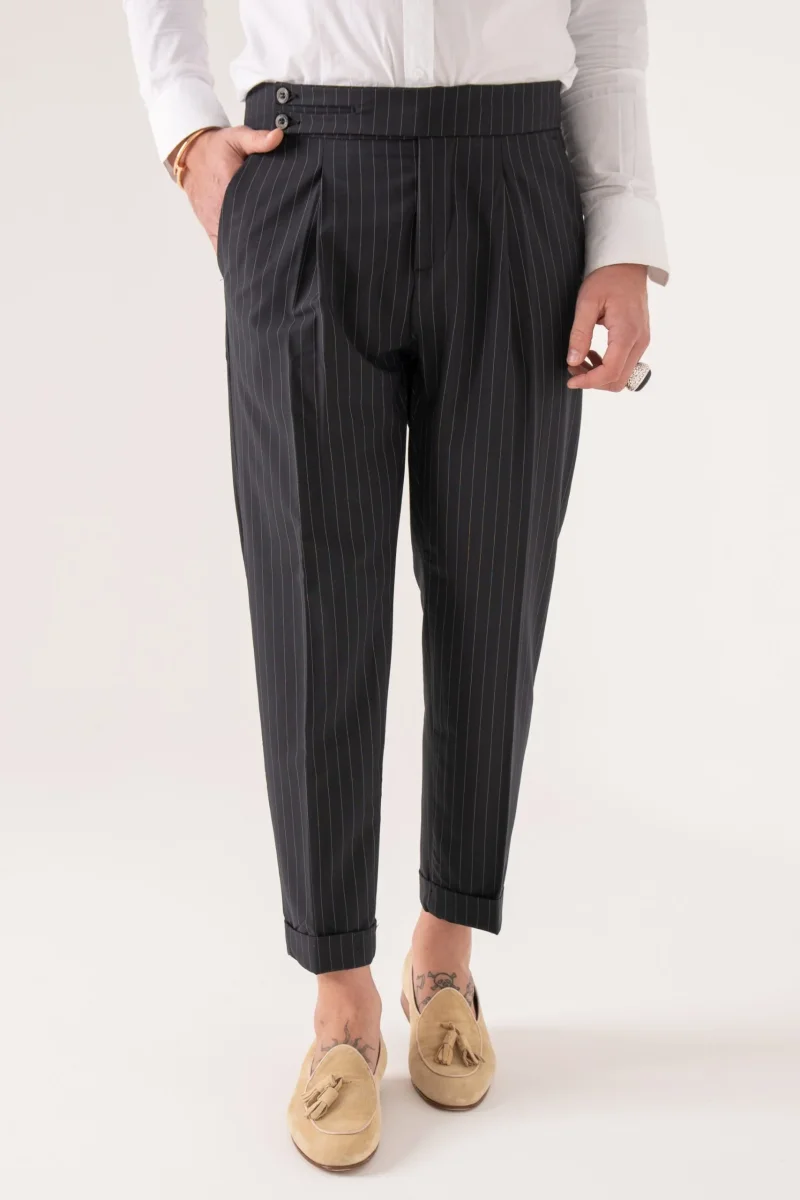 Pantalone Biforcato Gessato Blu Manhattan