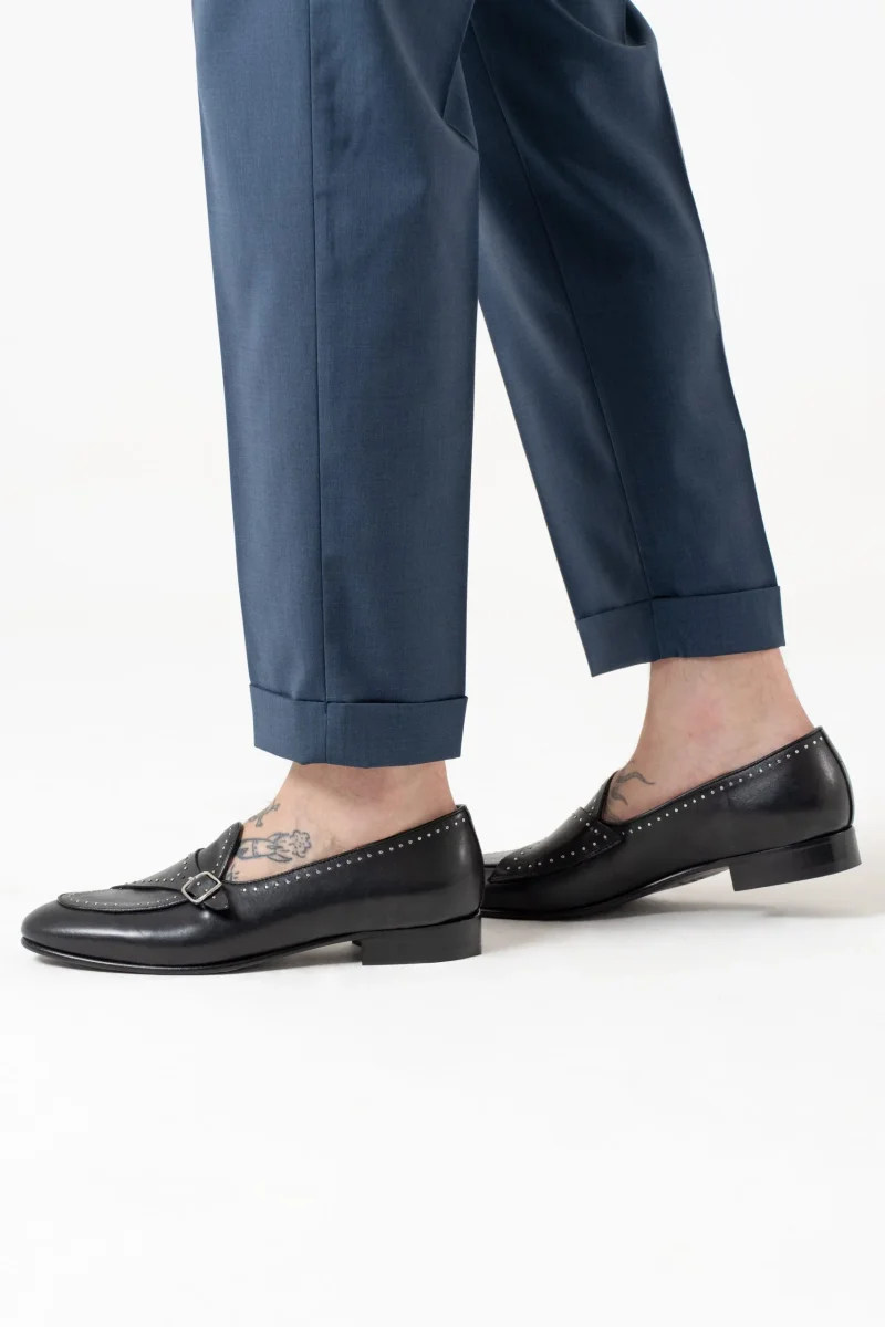 Questo pantalone sartoriale con pinces รจ lโemblema dellโeleganza contemporanea, perfetto per chi cerca un capo raffinato con una vestibilitร impeccabile. Caratterizzato da una vita alta e una cintura a doppia abbottonatura laterale, questi pantaloni offrono una silhouette pulita e slanciata. Le pinces frontali aggiungono volume e comfort, garantendo una caduta perfetta lungo la gamba. Lโorlo con risvolto dona un tocco moderno e sofisticato, ideale da abbinare sia con scarpe eleganti che con mocassini per uno stile piรน casual ma sempre curato.