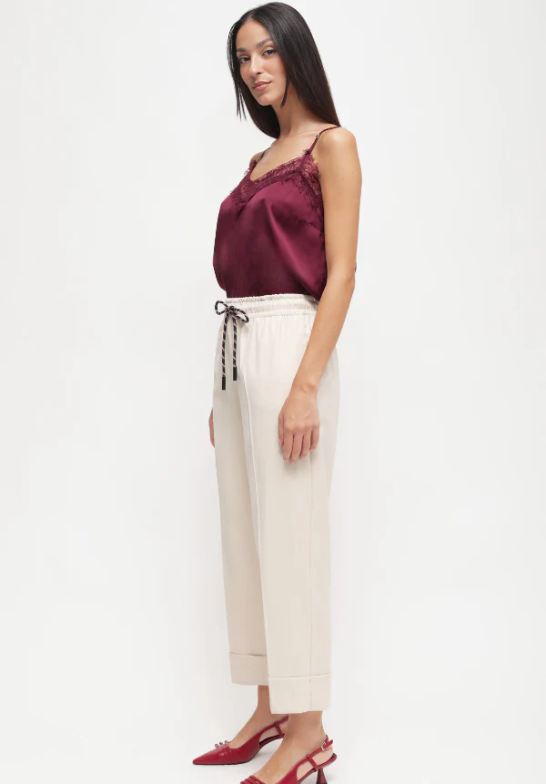 Pantalone Cropped alla caviglia con Coulisse e Risvolto
