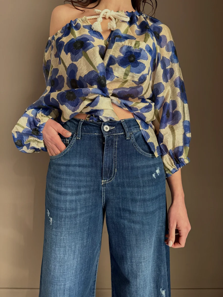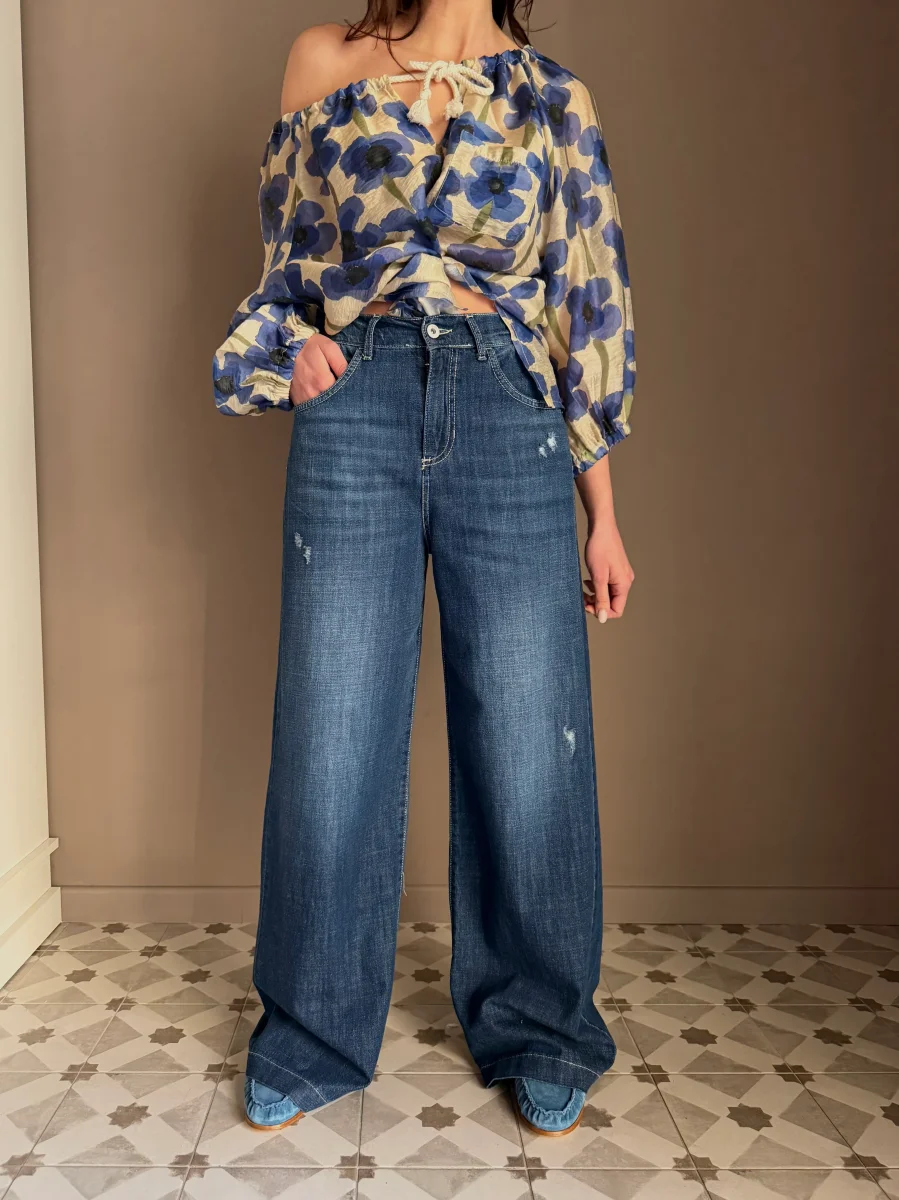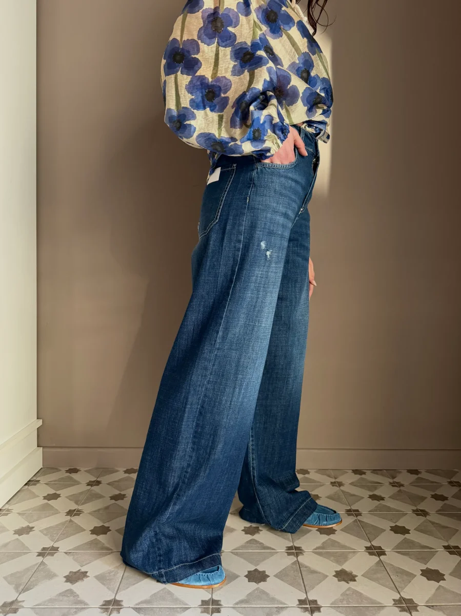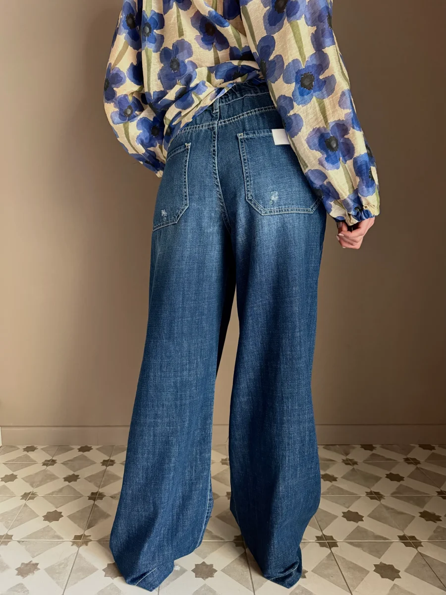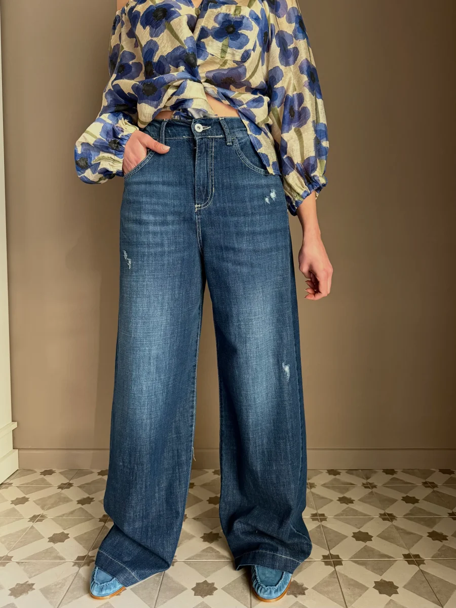 Questo denim non รจ il solito jeans: รจ l’interpretazione di Noumeno Concept del comfort assoluto unito a una linea impeccabile. La gamba ampia (wide leg) scivola dritta dal fianco, creando un movimento fluido che slancia la figura e regala una libertร di movimento senza precedenti.