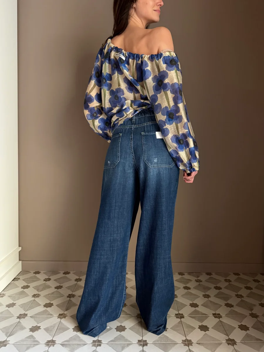 Jeans “Wide Leg”. Jeans destrutturato in tessuto testurizzato a gamba molto larga