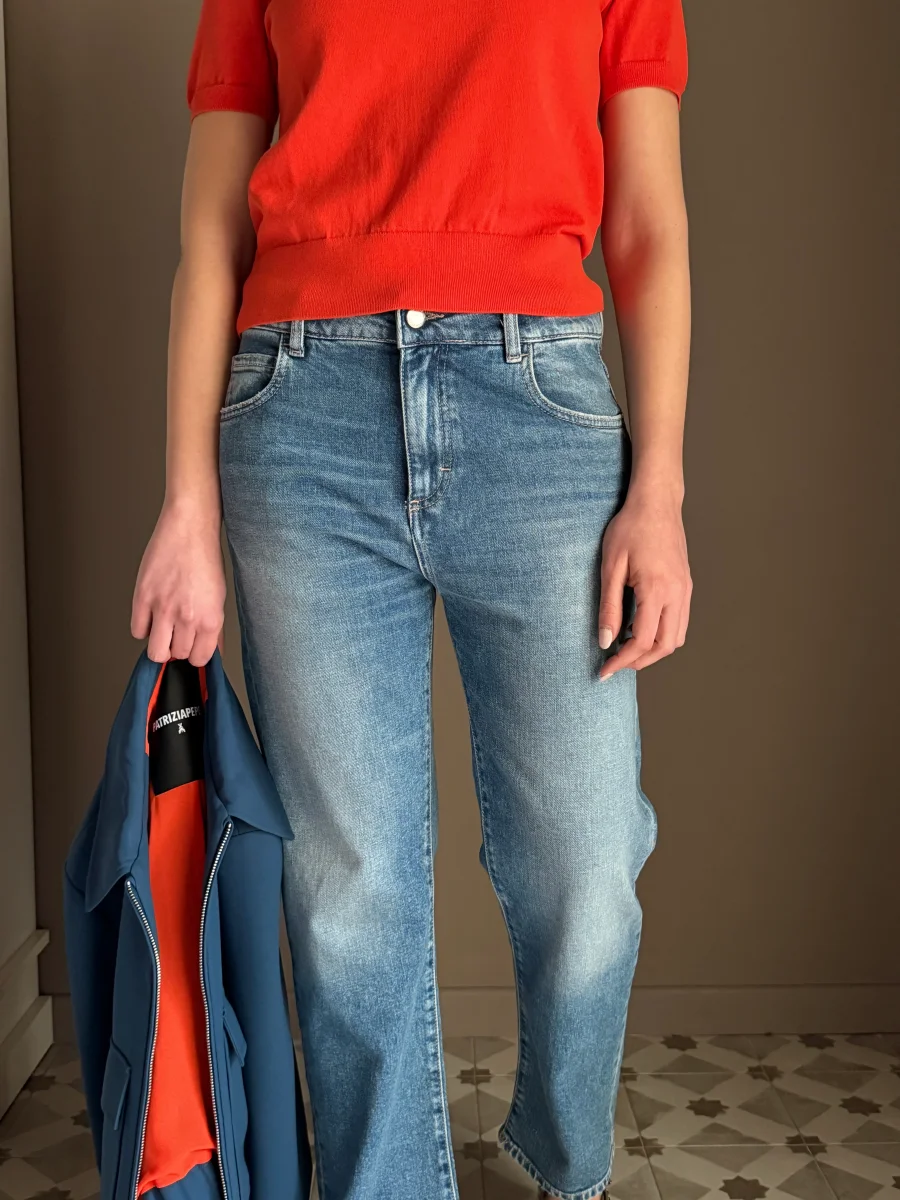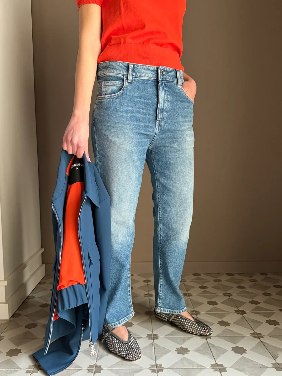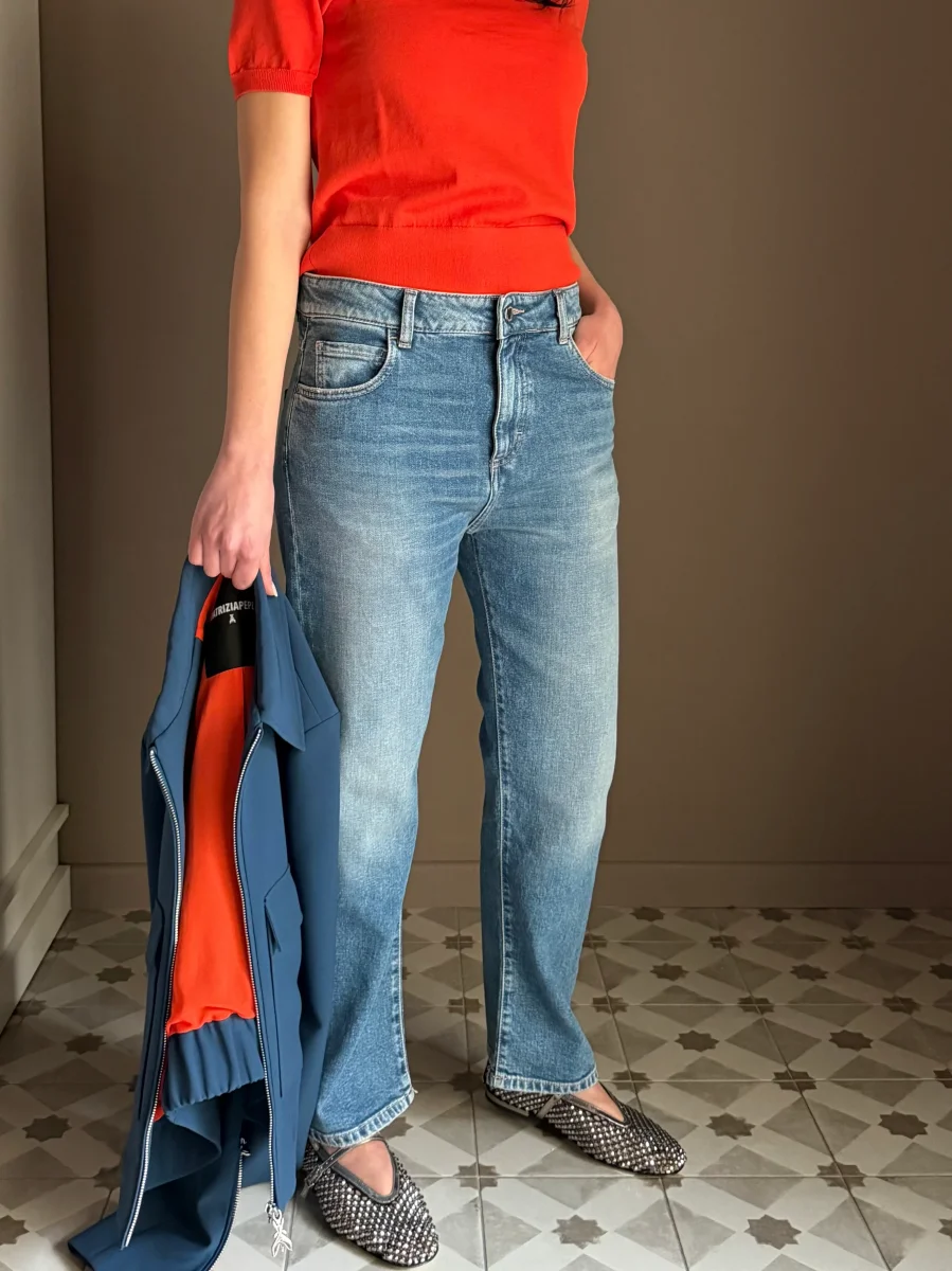 “Questo jeans รจ la base perfetta per ogni outfit. Provalo con la maglia in viscosa Patrizia Pepe per un contrasto di texture raffinato, oppure con un blazer strutturato per un look piรน deciso. ร quel denim che non vorrai mai smettere di indossare.โ