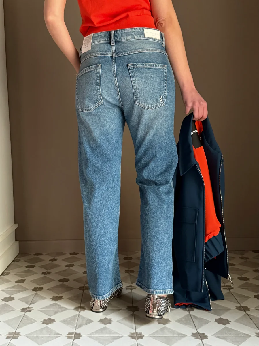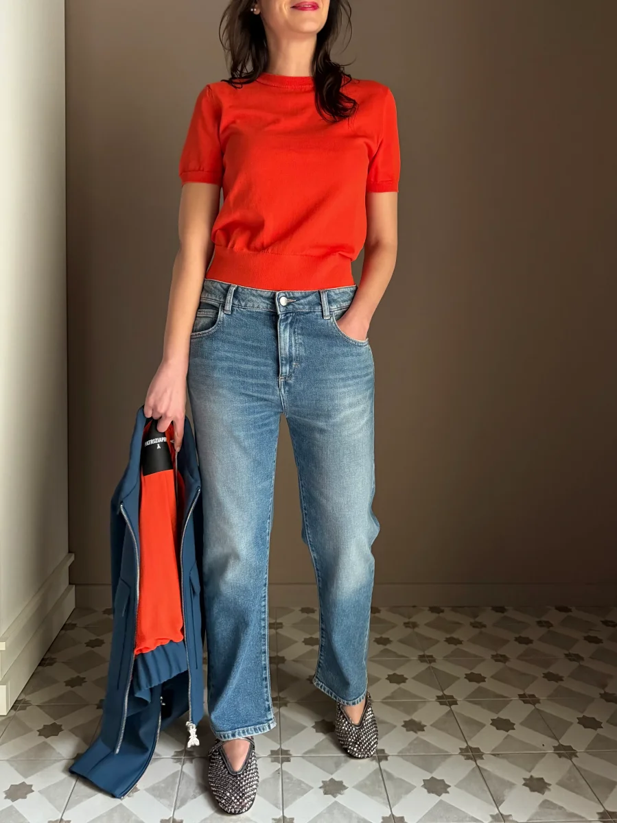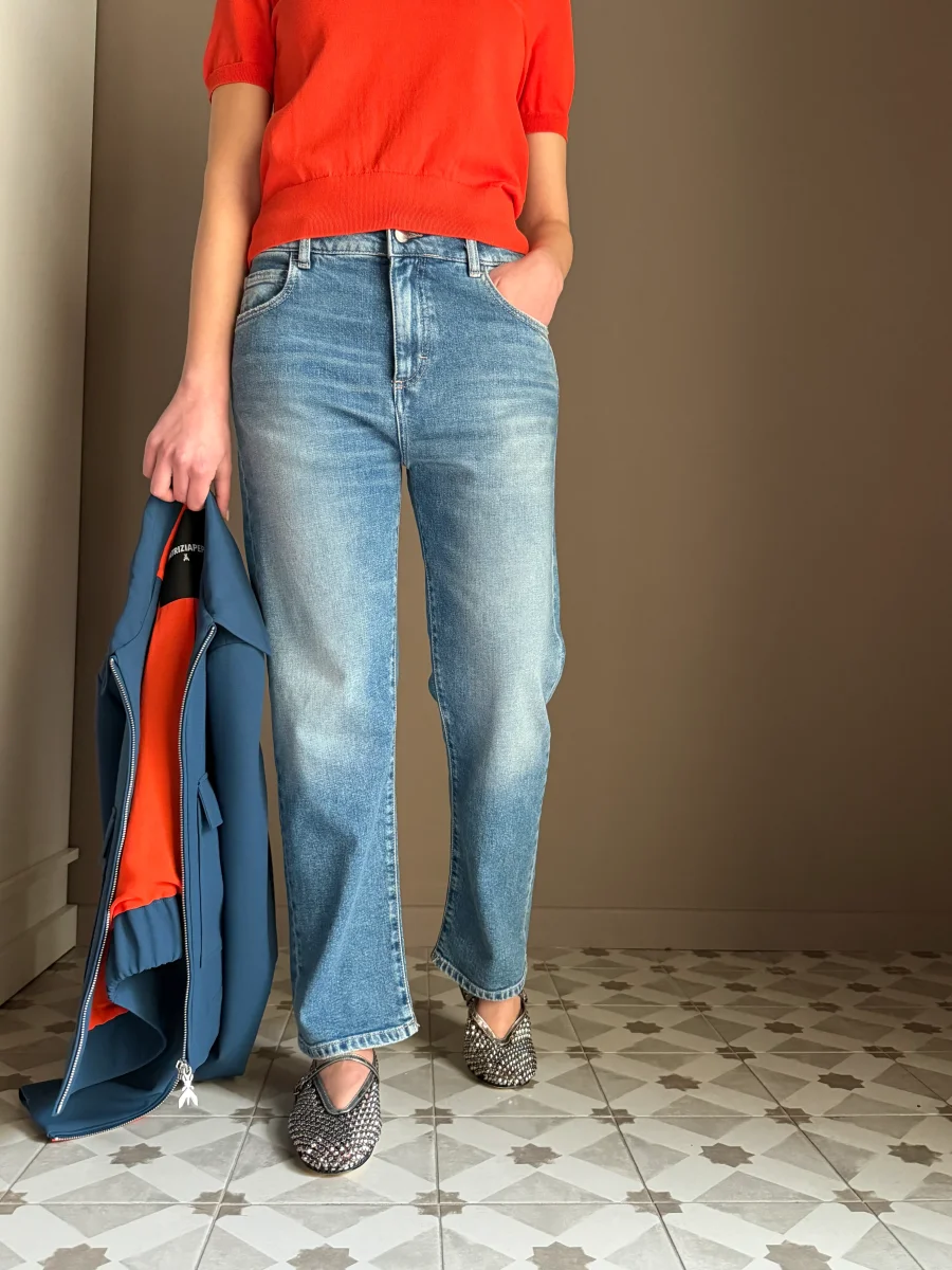 “Questo jeans รจ la base perfetta per ogni outfit. Provalo con la maglia in viscosa Patrizia Pepe per un contrasto di texture raffinato, oppure con un blazer strutturato per un look piรน deciso. ร quel denim che non vorrai mai smettere di indossare.โ