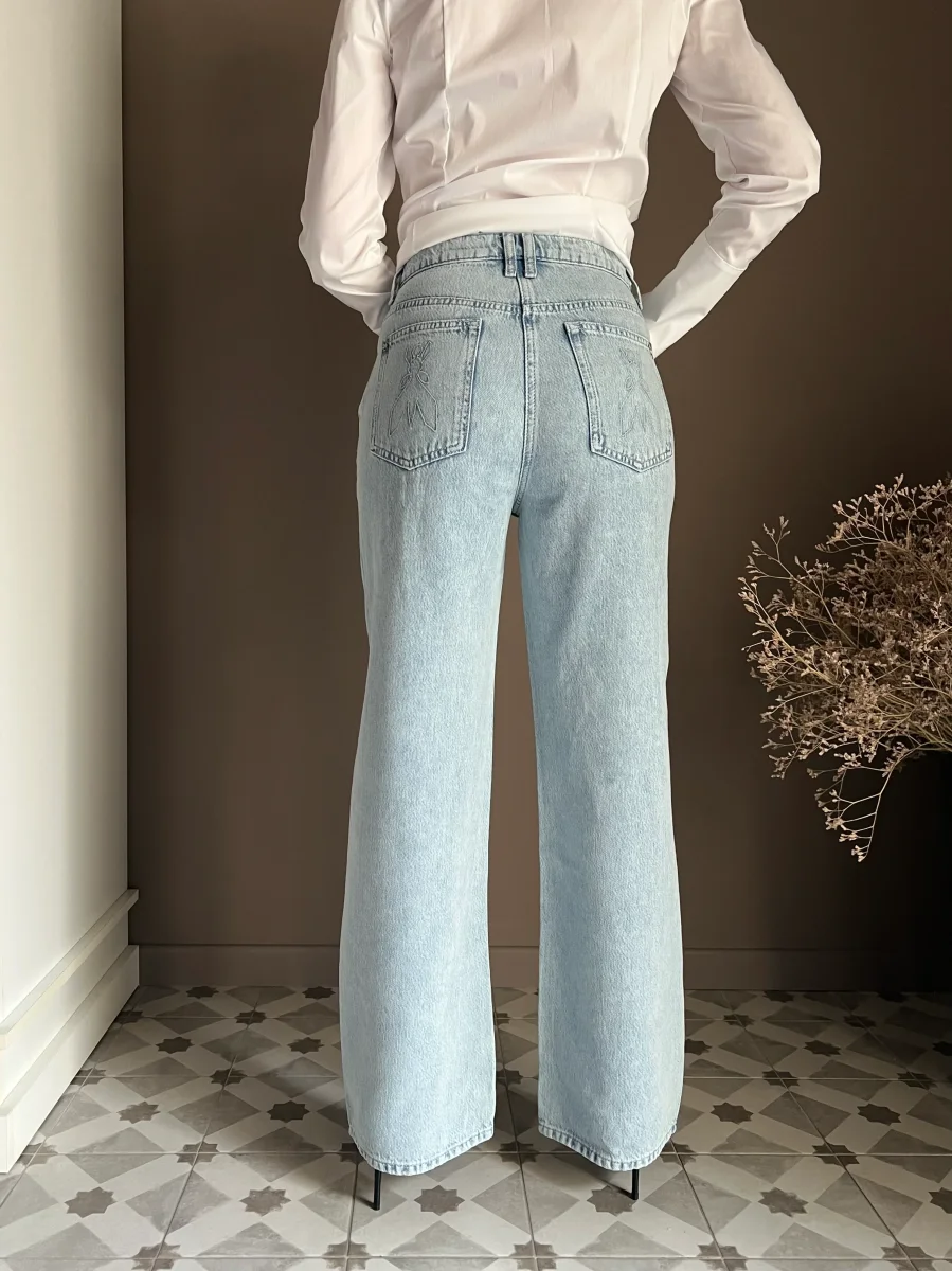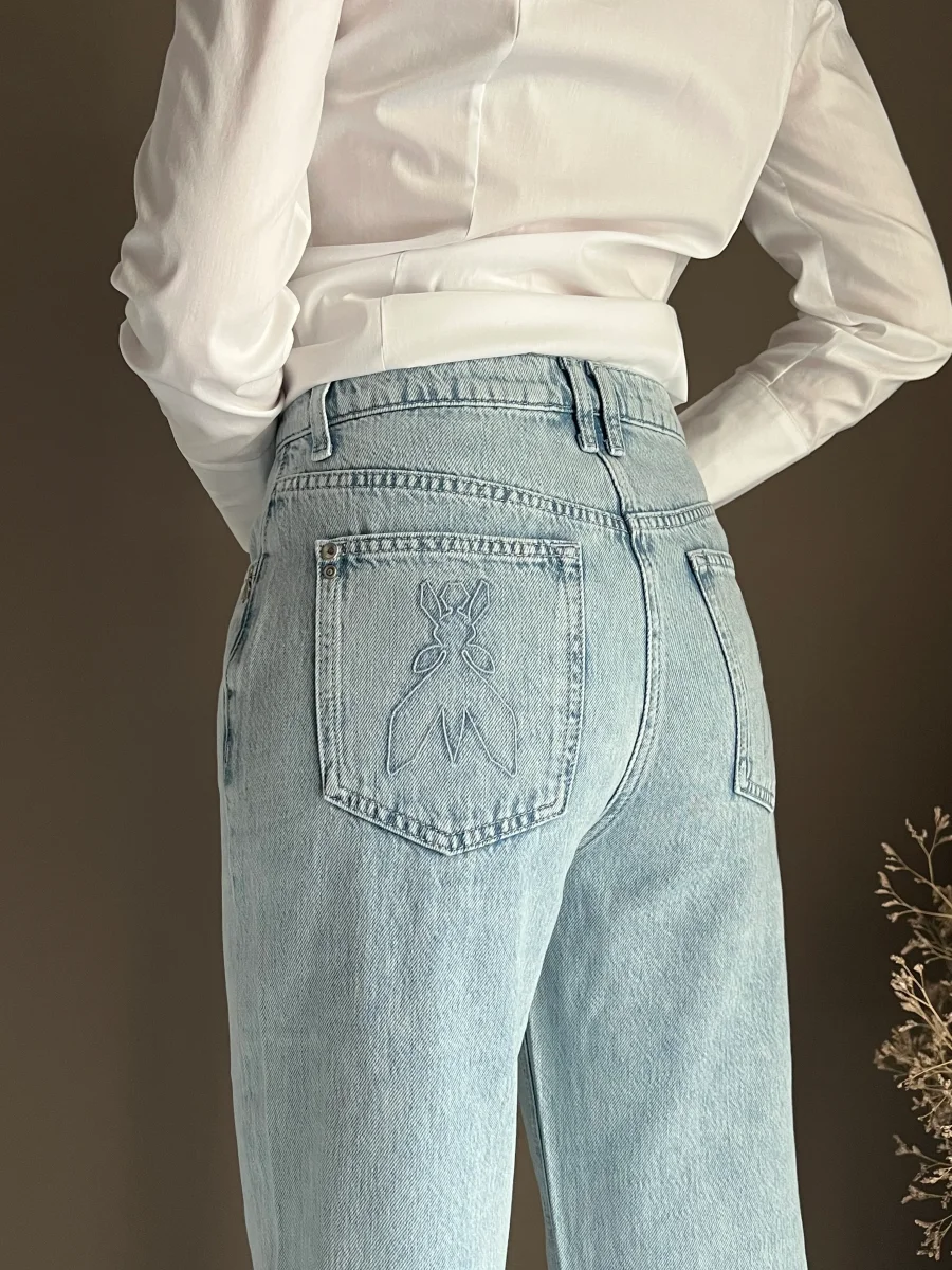 Il tocco distintivo? L’iconica Fly di Patrizia Pepe ricamata con maestria sulle tasche posteriori, un dettaglio tono su tono che firma il capo con discreta eleganza.