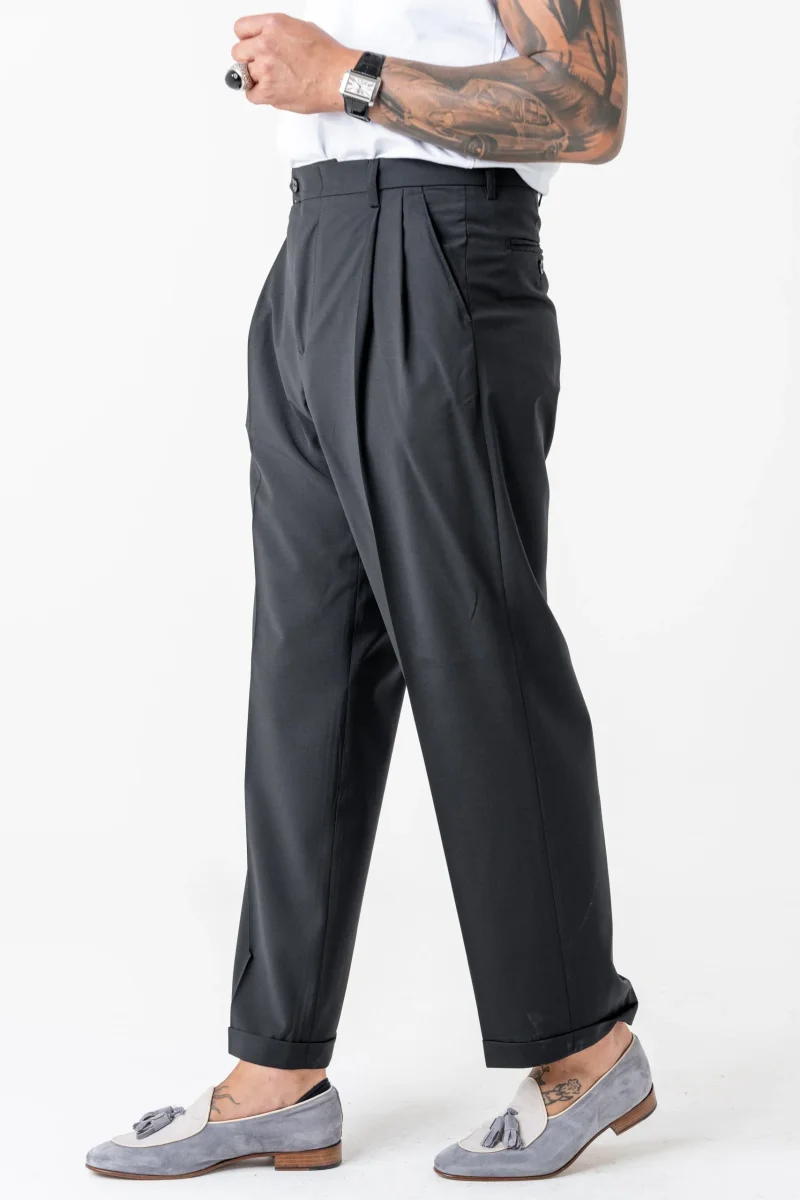 Pantalone Fondo Ampio con Passanti Nero Milano