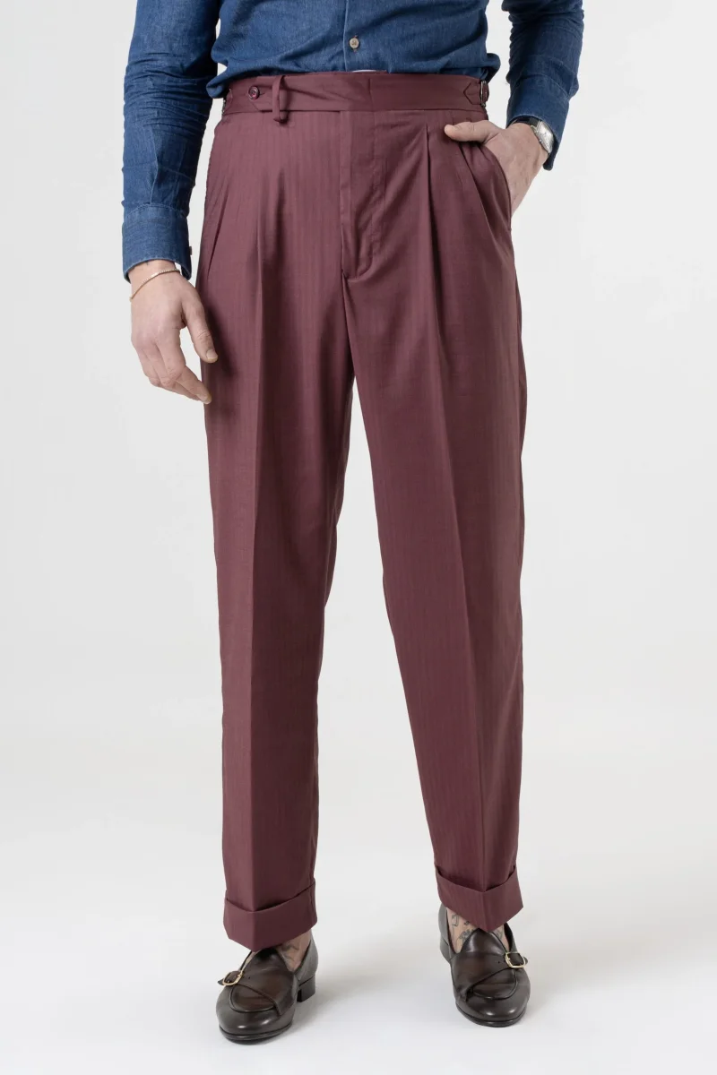Pantalone Fondo Ampio e Fibbie Laterali Bordò Solaro Malibù