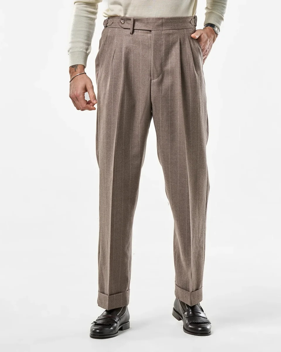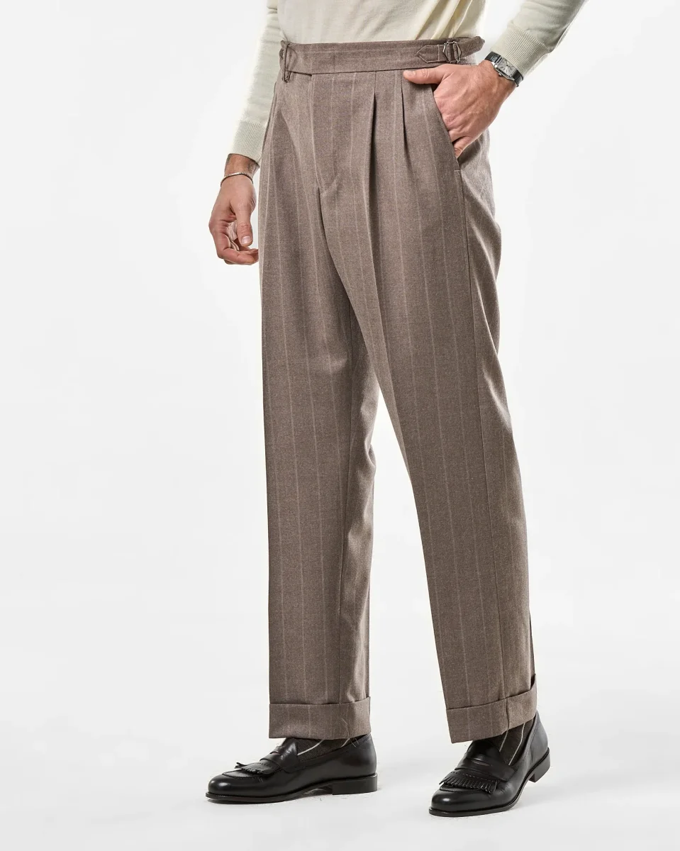 Pantalone Semi-Sartoriale in Fresco Lana – Fondo Ampio, Fibbie Laterali e Risvolto da 5 cm