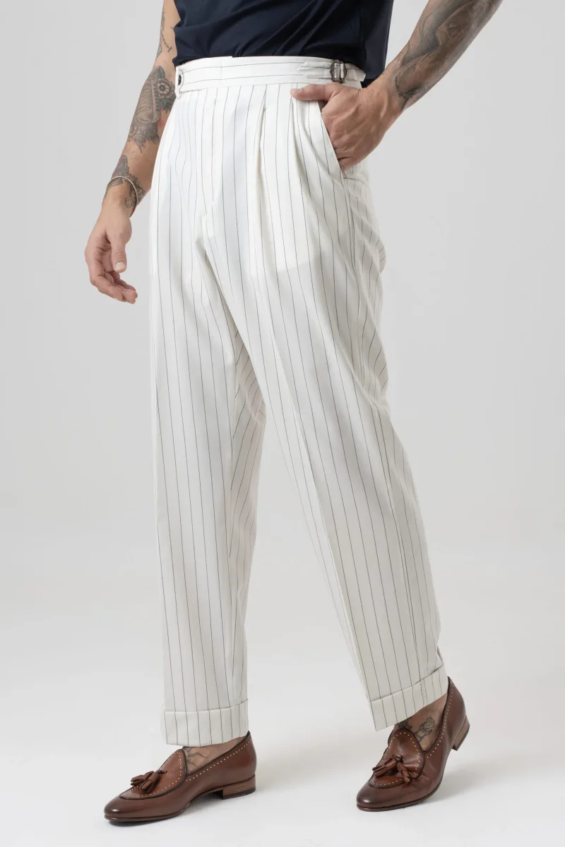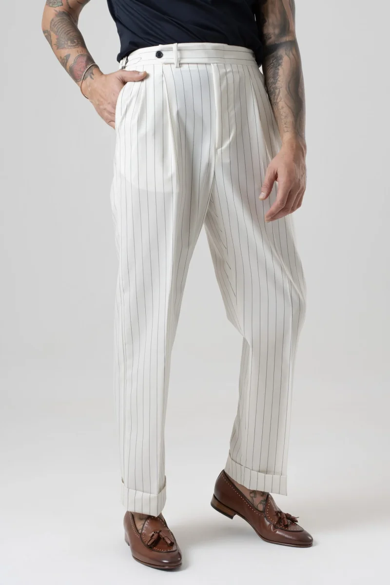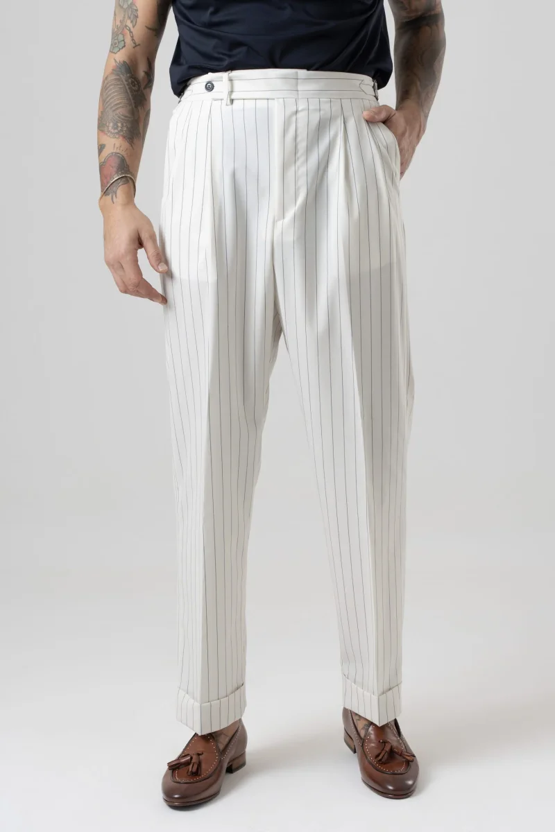 Pantalone Semi-Sartoriale in Fresco Lana – Fondo Ampio, Fibbie Laterali e Risvolto da 5 cm