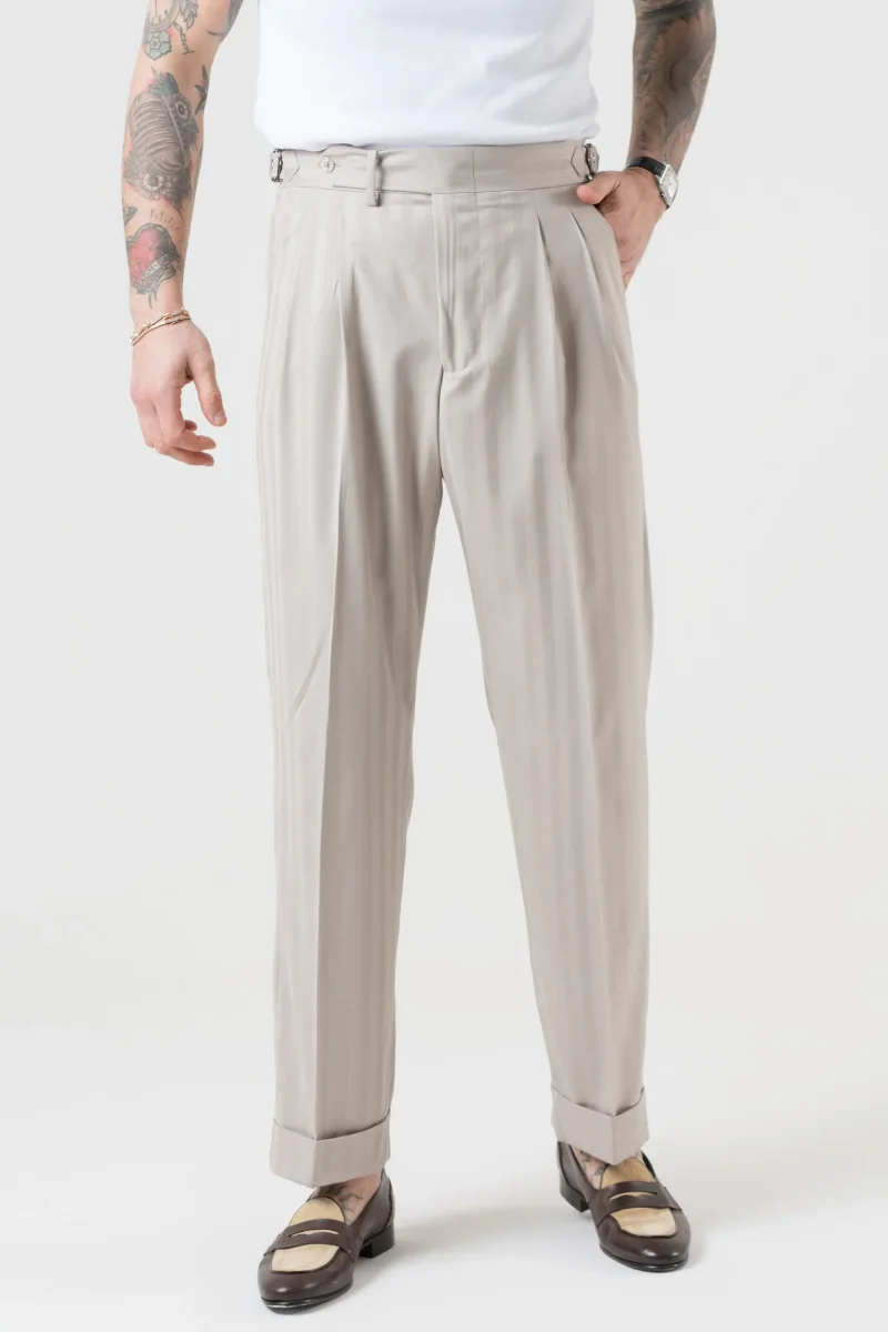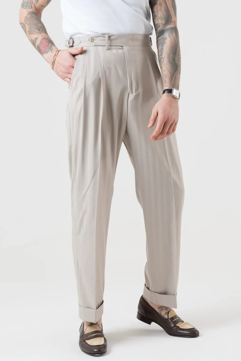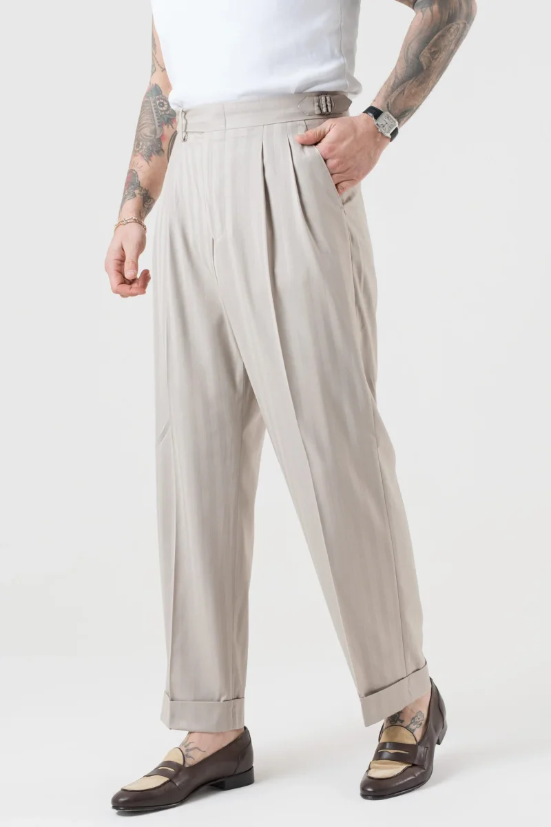 Pantalone Semi-Sartoriale in Fresco Lana – Fondo Ampio, Fibbie Laterali e Risvolto da 5 cm
