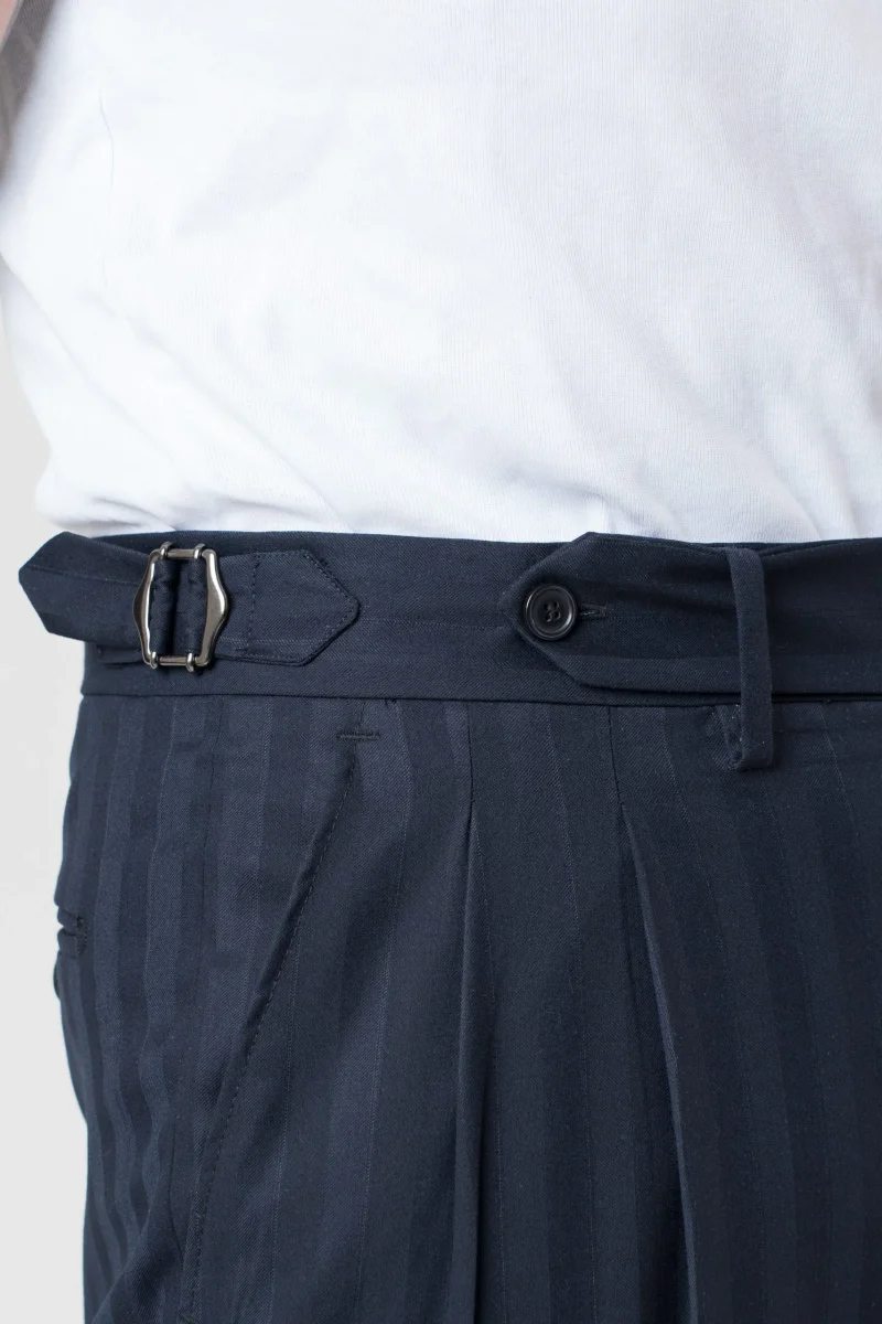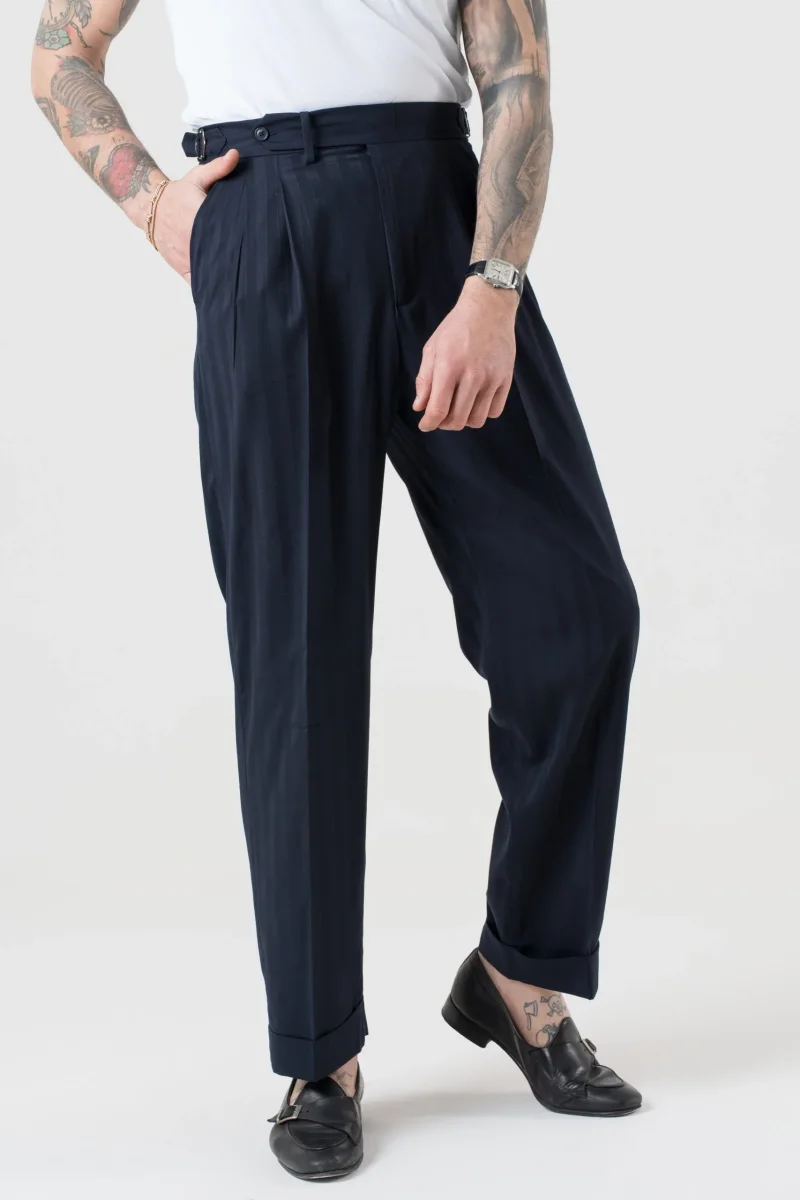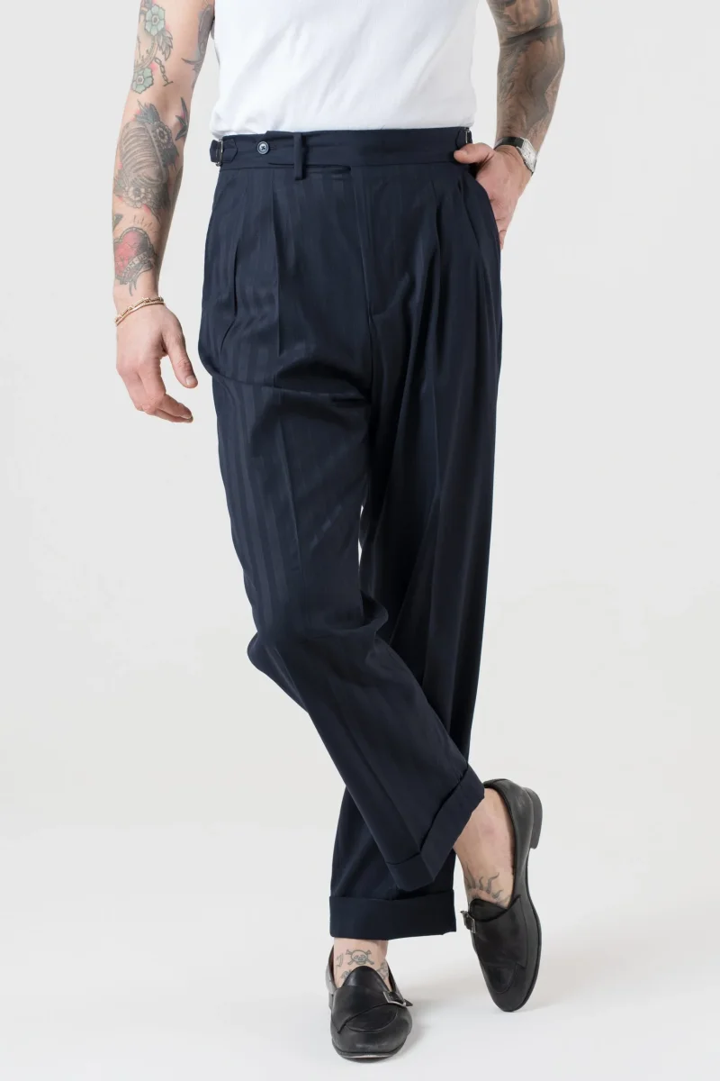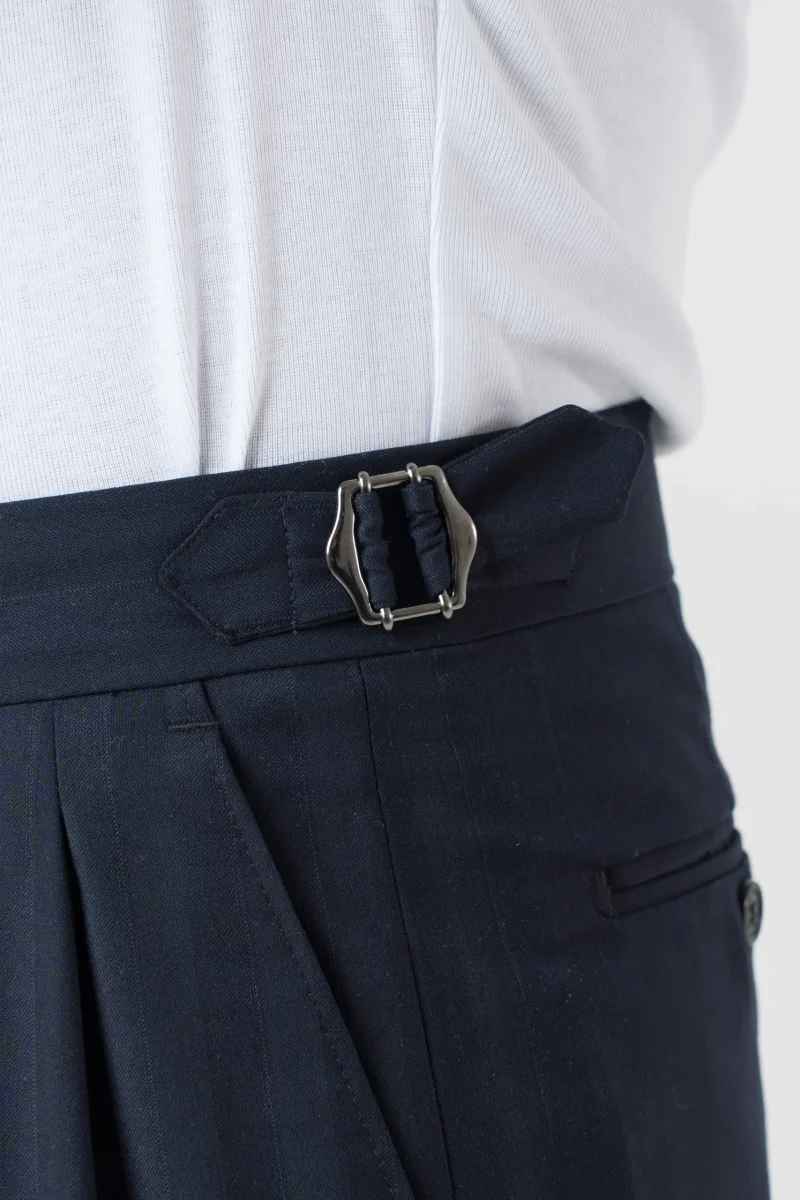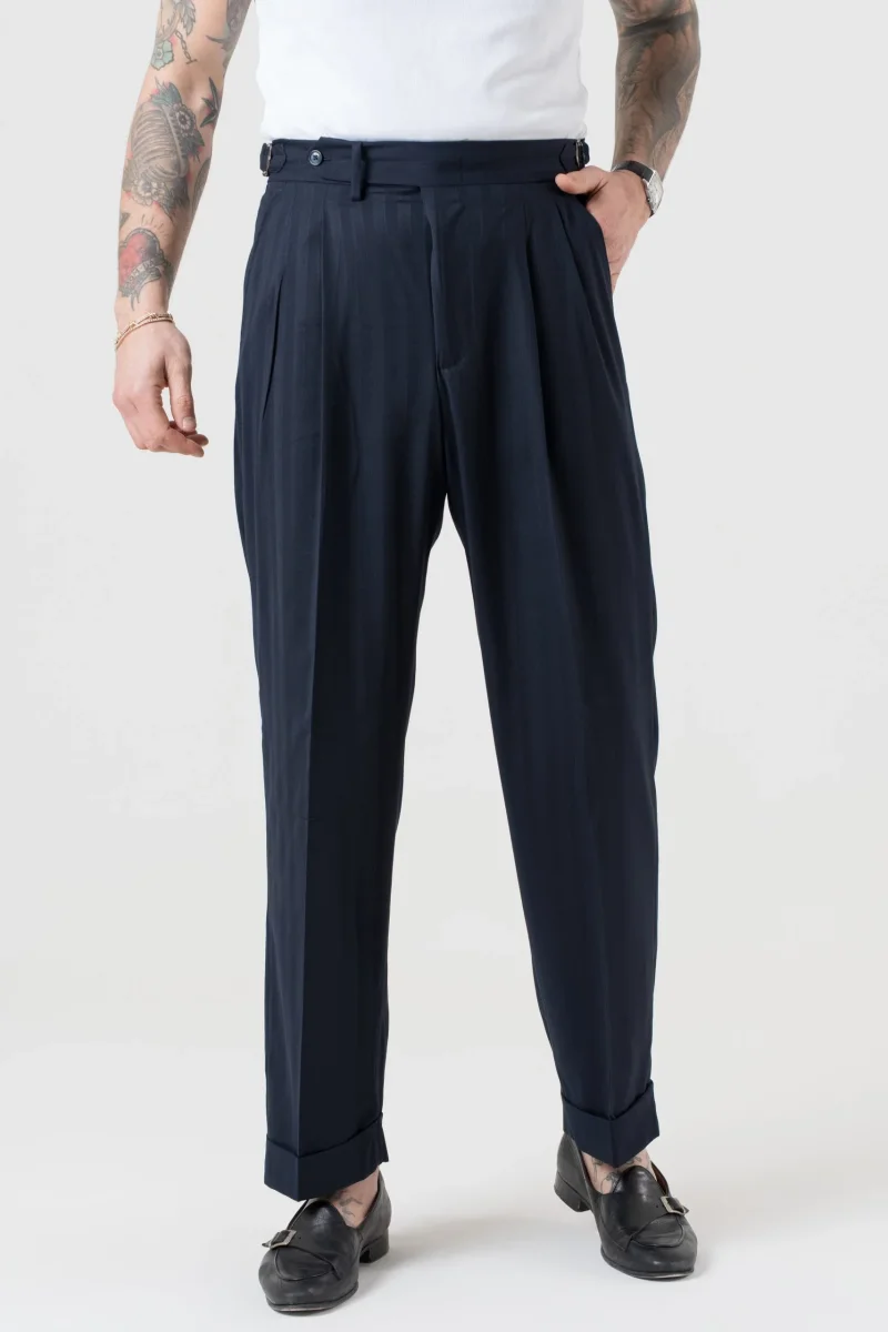 Pantalone Semi-Sartoriale in Fresco Lana – Fondo Ampio, Fibbie Laterali e Risvolto da 5 cm