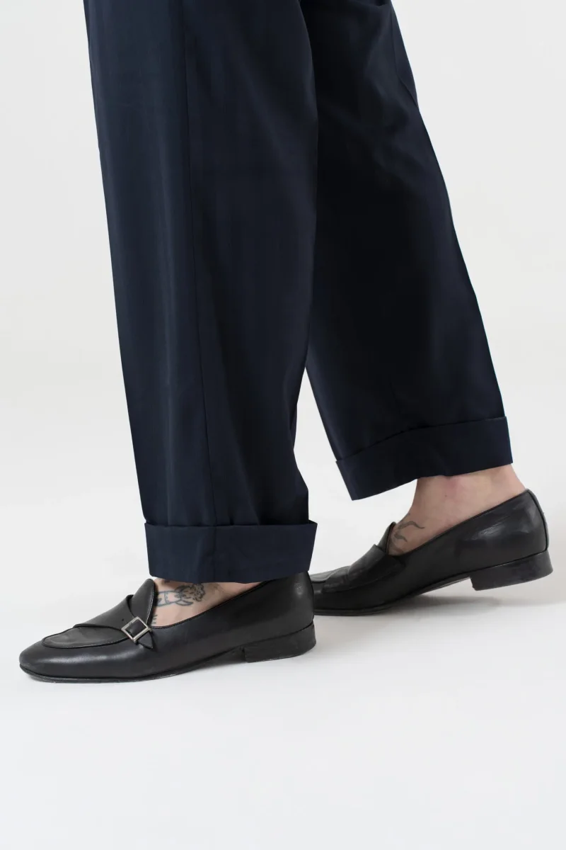 Pantalone Fondo Ampio e Fibbie Laterali Solaro Riga Larga Blu Kyoto