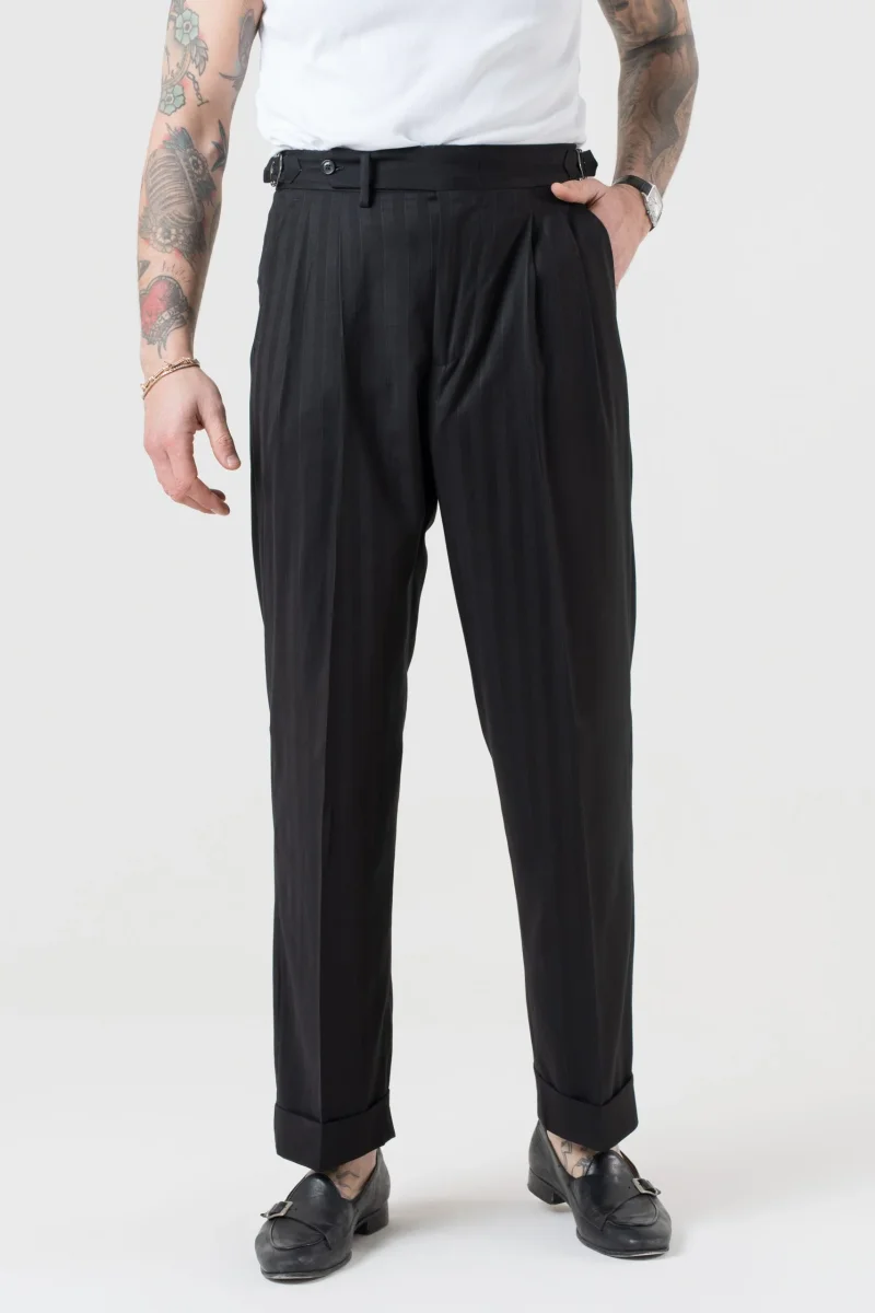 Pantalone Semi-Sartoriale in Fresco Lana – Fondo Ampio, Fibbie Laterali e Risvolto da 5 cm