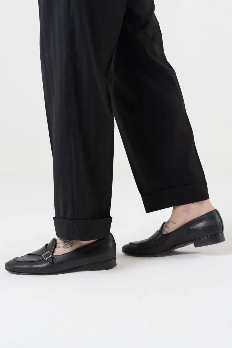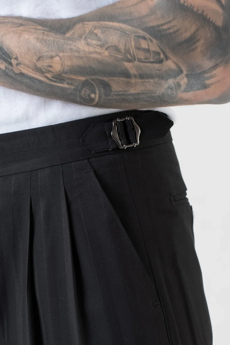 Pantalone Fondo Ampio e Fibbie Laterali Solaro Riga Larga Nero Osaka