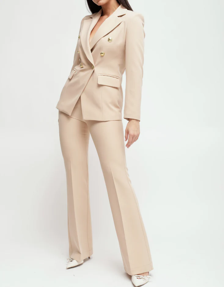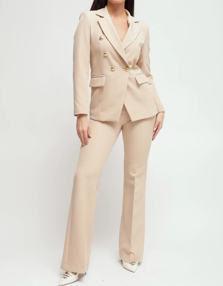 Completo giacca pantalone Made in Italy Maryley, elegante e alla moda per look professionali. Caratteristiche: Giacca doppio petto con bottoni oro Pantalone stile zampa Made in Italy Perfetto per un look professionale e chic al lavoro o in occasioni speciali.