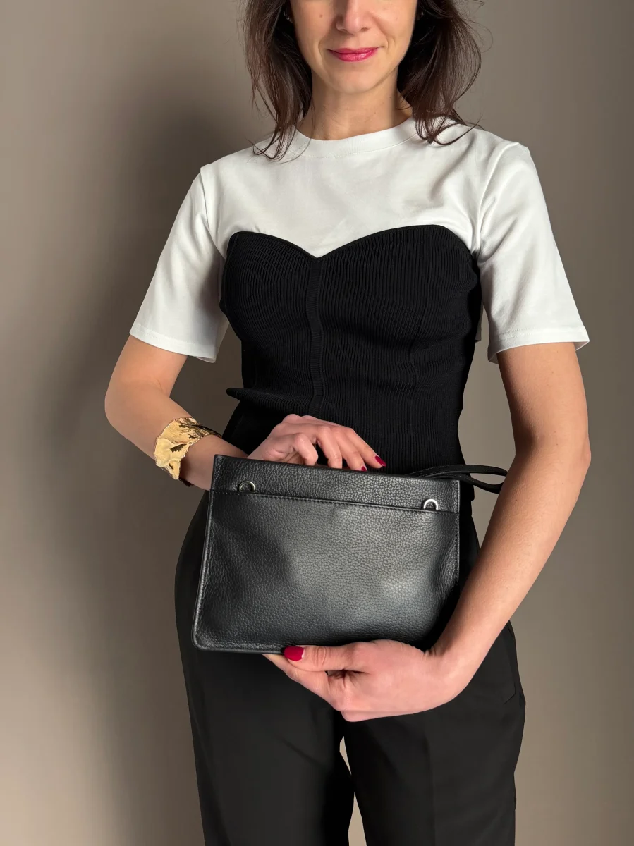 Un accessorio che incarna l’essenza del “minimalismo di carattere”. Questa pochette Patrizia Pepe รจ stata pensata per la donna che cerca un pezzo d’investimento capace di trasformarsi radicalmente: da sofisticata clutch a mano per i cocktail serali a pratica borsa a tracolla per gli appuntamenti formali in cittร .