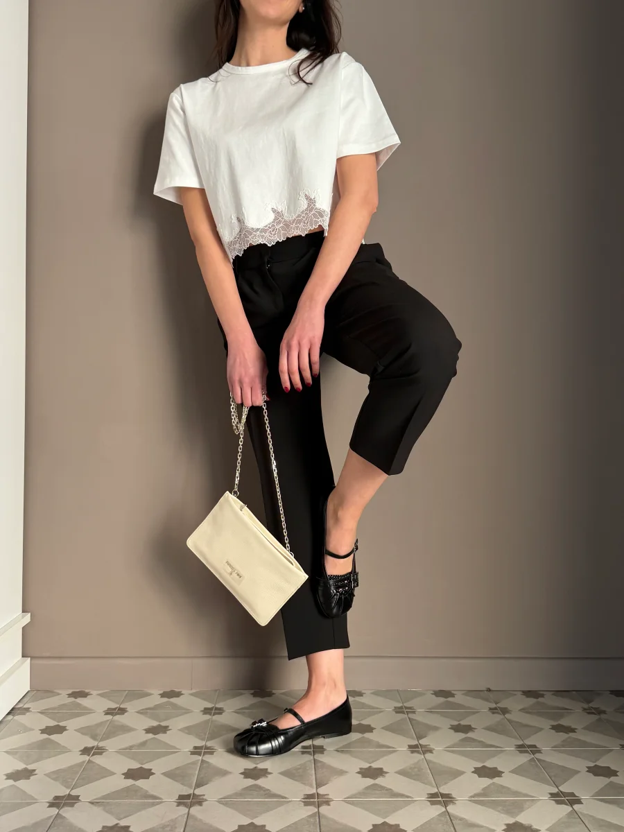 Un accessorio che incarna l’essenza del “minimalismo di carattere”. Questa pochette Patrizia Pepe รจ stata pensata per la donna che cerca un pezzo d’investimento capace di trasformarsi radicalmente: da sofisticata clutch a mano per i cocktail serali a pratica borsa a tracolla per gli appuntamenti formali in cittร . La texture in pregiata pelle martellata non […]