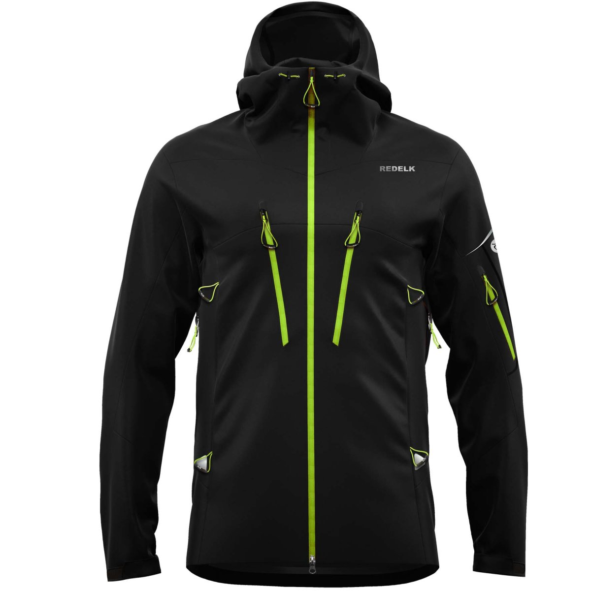 Redelk LX3UB Giacca 20000 col M ย รจ un guscio interamente termonastrato con cerniere impermeabili, cappuccio e fondo regolabili con coulisse e areazioni sotto manica.