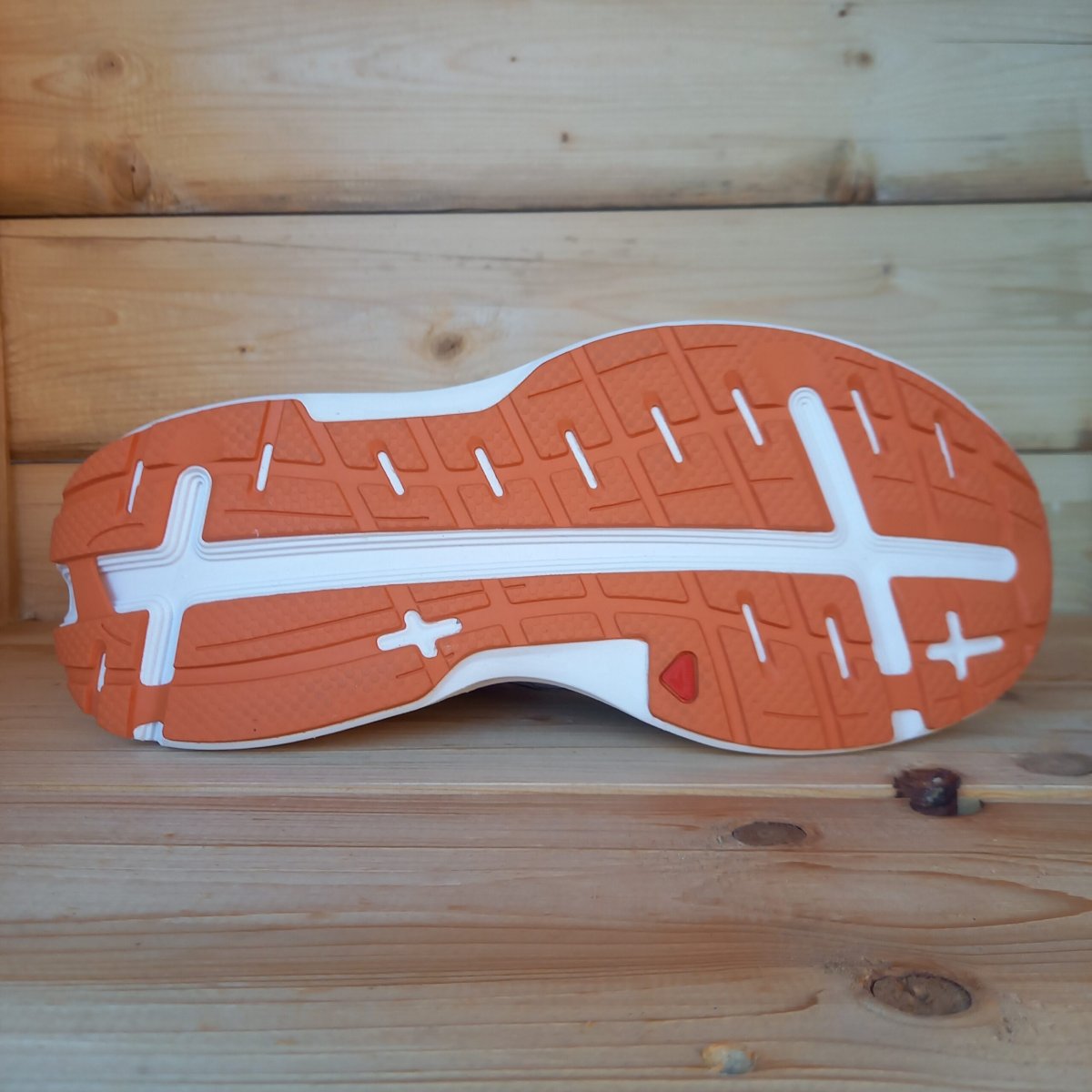 Suola con battistrada in mescola Road Contagrip con design specifico per il running su strada, superfici dure e piane