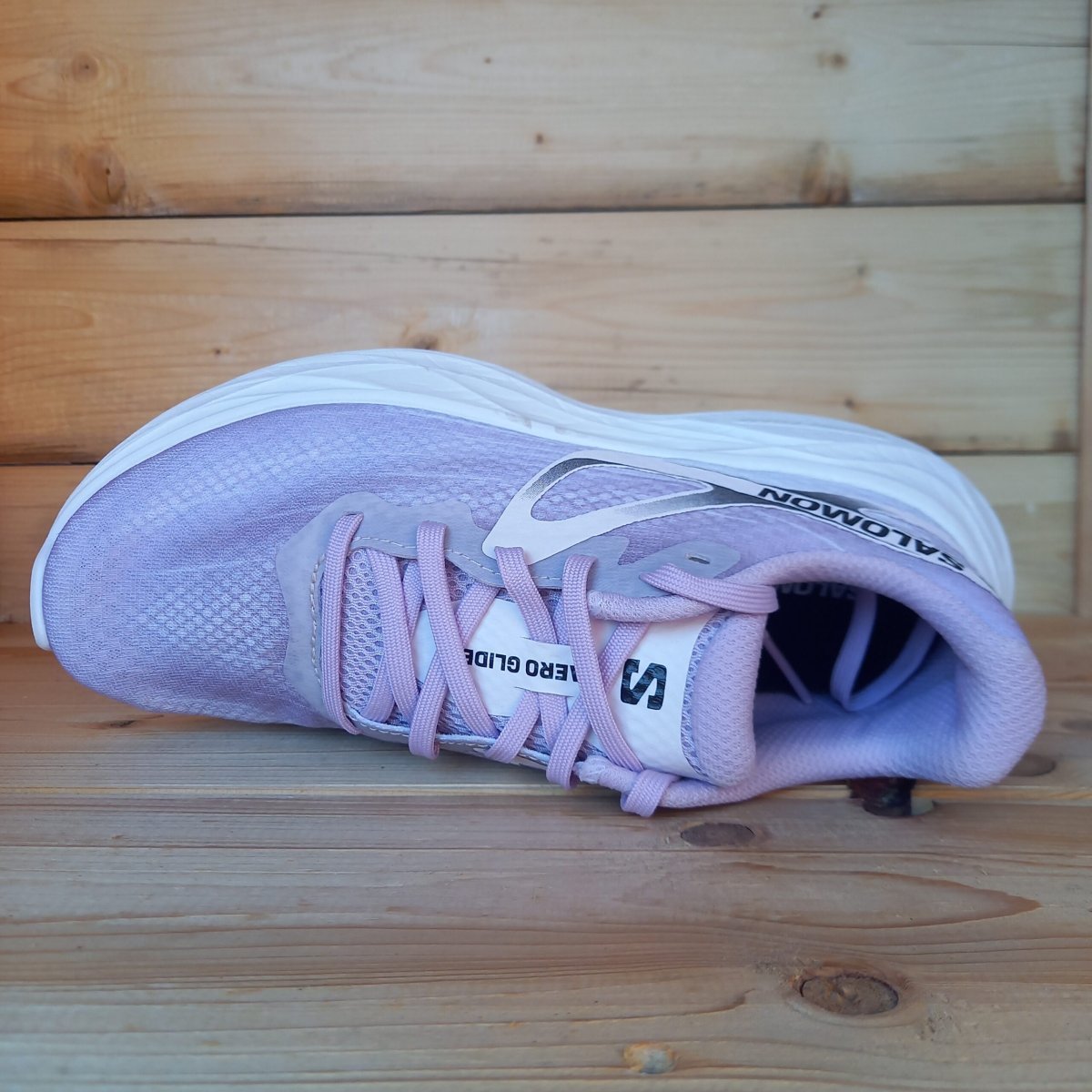 La Salomon Aero Glide W รจ una scarpa da running leggera e fortemente ammortizzata pensata per macinare chilometri con rimbalzo ed energia illimitati. Con costruzione della tomaia studiata per garantire leggerezza e aerazione, unitamente a morbidezza di livello superiore in corrispondenza della linguetta e del collarino, questa scarpa ti regalerร calzata e performance rivoluzionarie indimenticabili.