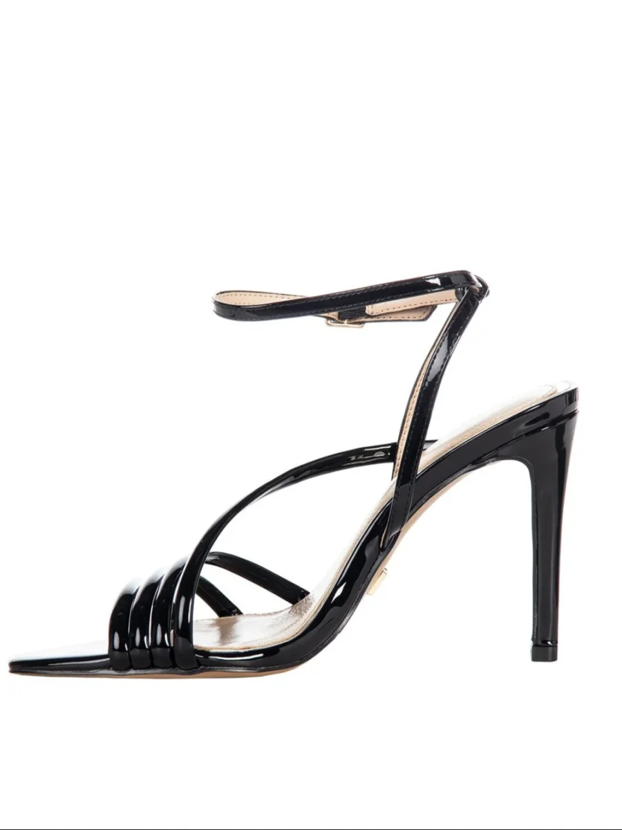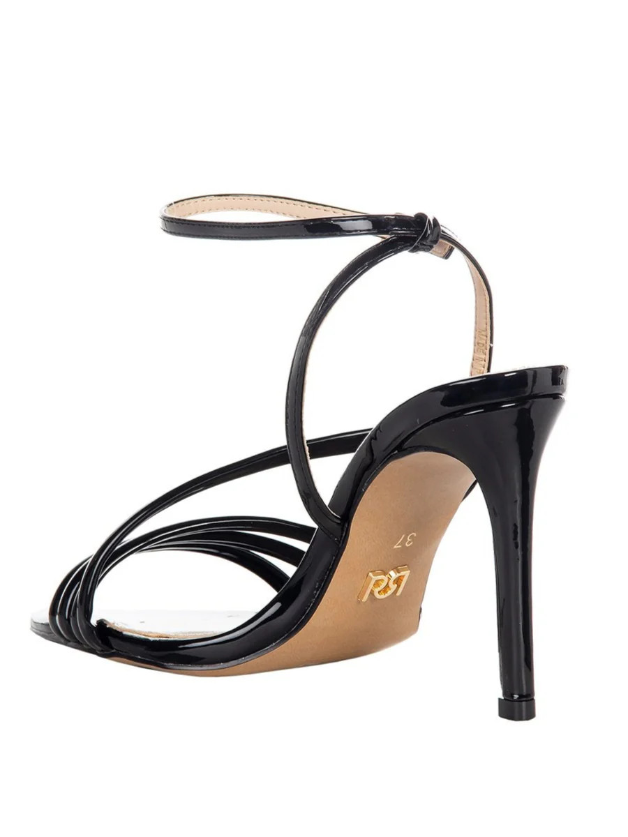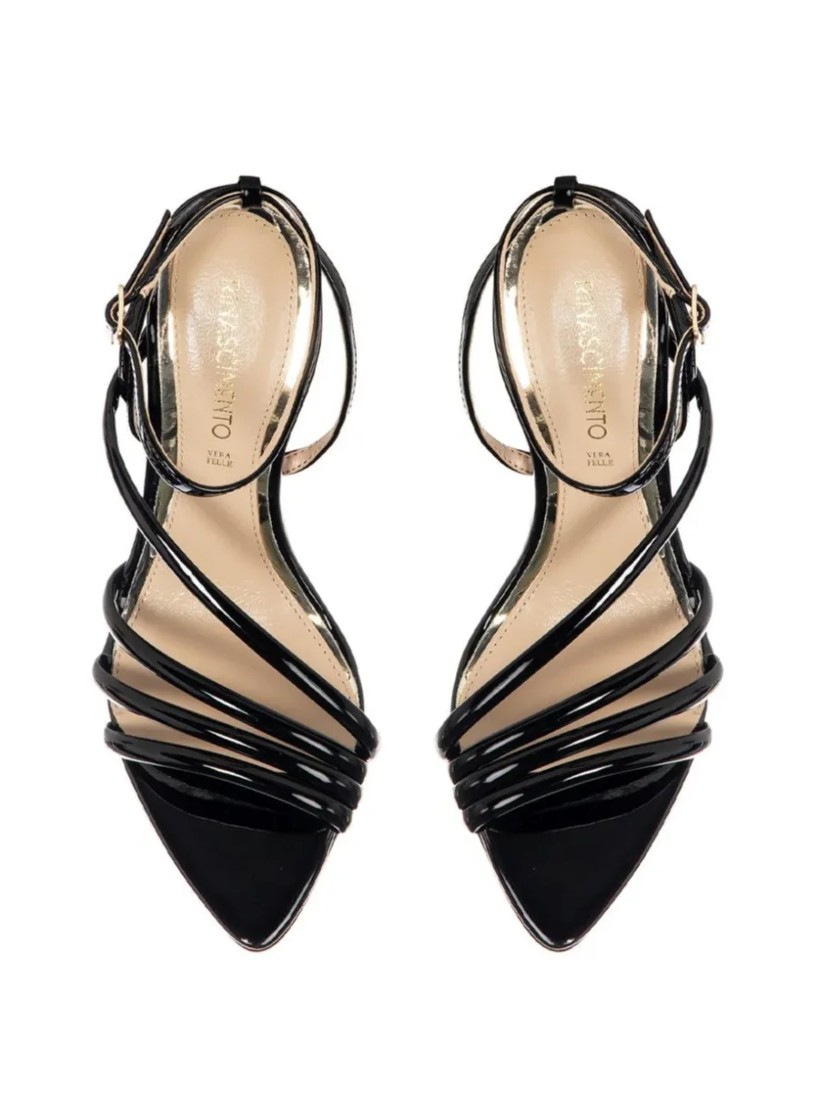 Sandali in vernice con tacco a stiletto 10 cm, eleganti e femminili. Caratteristiche: Vernice lucida Cinturini intrecciati Cinturino regolabile alla caviglia Tacco a stiletto 10 cm Perfetti per serate eleganti e occasioni speciali.