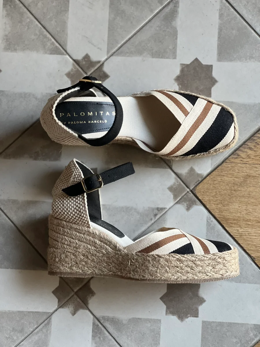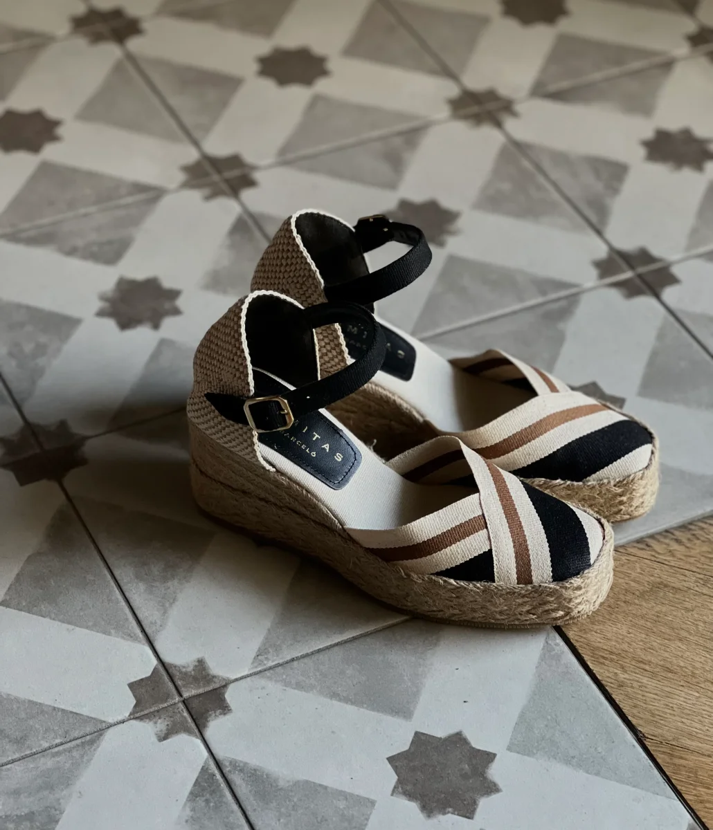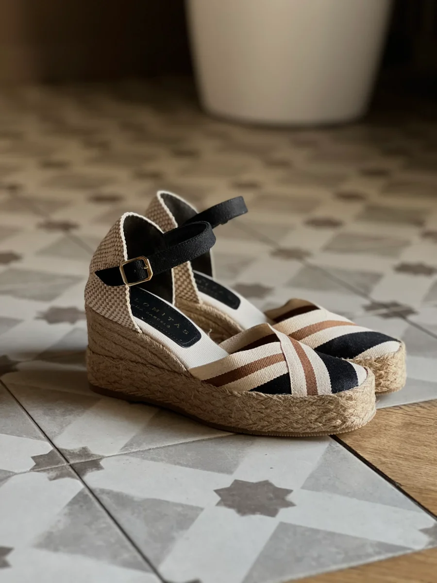 Questo sandalo con zeppa in corda รจ la scelta perfetta per unโestate allโinsegna dello stile e del comfort. La tomaia in cotone dona un fascino artigianale e leggero, mentre il cinturino alla caviglia assicura una calzata stabile e sicura. La zeppa di 8cm slancia la figura mantenendo unโandatura comoda e naturale. Perfetto da abbinare a look casual o piรน eleganti, per unโeleganza senza sforzo.