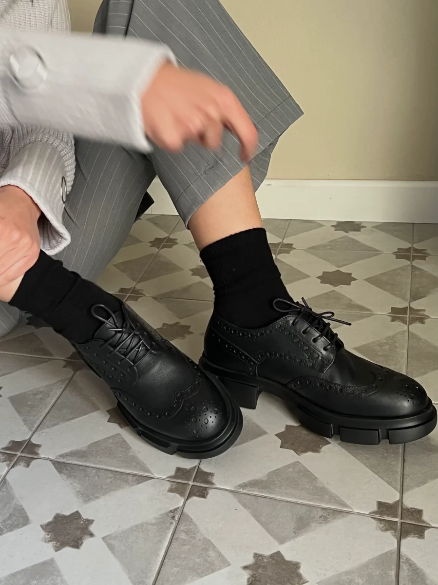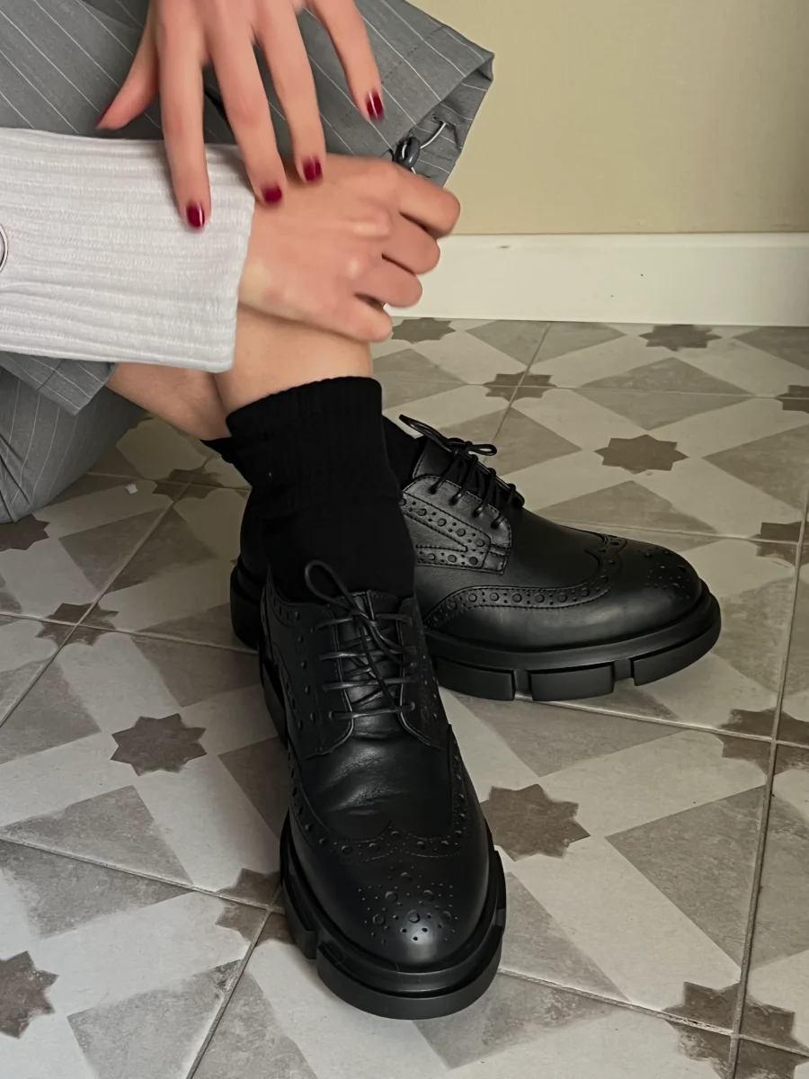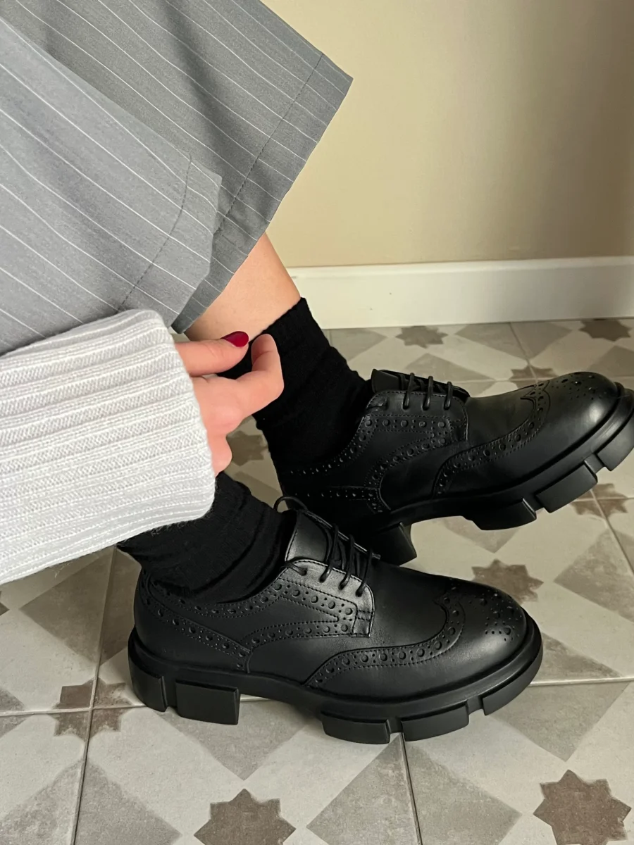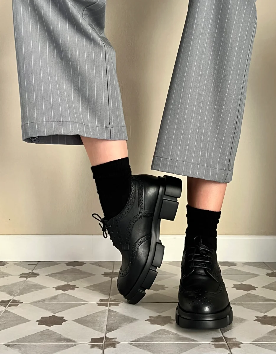 Scarpa allacciata in pelle morbida, con lavorazione inglese e lacci, per uno stile elegante e versatile. Fondo sagomato per il massimo comfort. Perfetta per un look sofisticato e quotidiano.