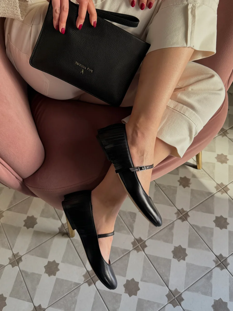 Un’interpretazione d’avanguardia della classica Mary Jane, dove la morbidezza della nappa incontra un design ironico e ricercato. Questa calzatura firmata Anna F. รจ pensata per chi desidera unire l’estetica bon-ton a un dettaglio di carattere che non passa inosservato.