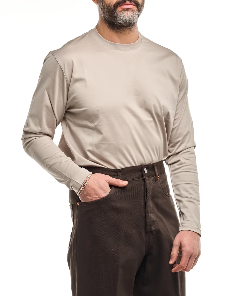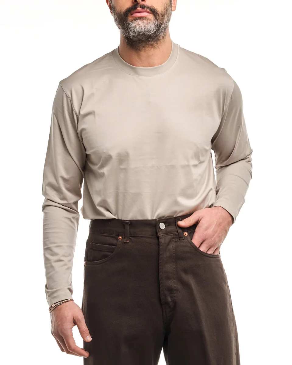 Shirt Regolare Manica Lunga Girocollo in Filo di Scozia Sabbia