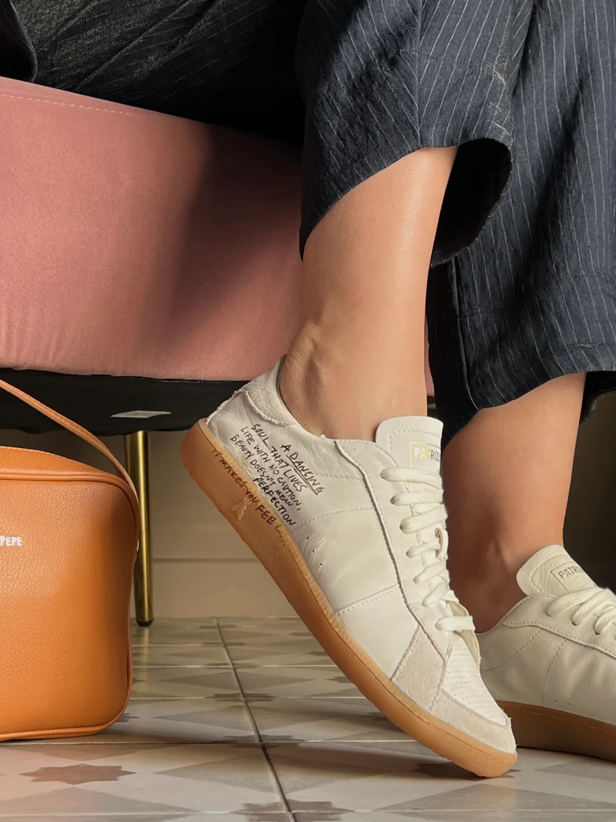 Patrizia Pepe lancia le sneakers SKIN, realizzate in nappa di alta qualitร con lavaggio stone per una morbidezza unica, da indossare senza cautela. Il trattamento conferisce un aspetto vissuto: piรน le indossi, piรน diventano belle. I dettagli in suede e il claim a lato sottolineano ricercatezza e originalitร . Una dichiarazione di libertร ed espressione di sรฉ. Abbraccia la vita con le sue imperfezioni e rendi queste sneakers parte della tua storia.