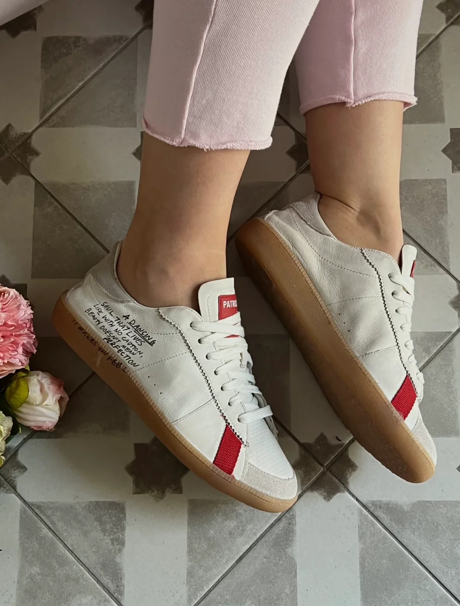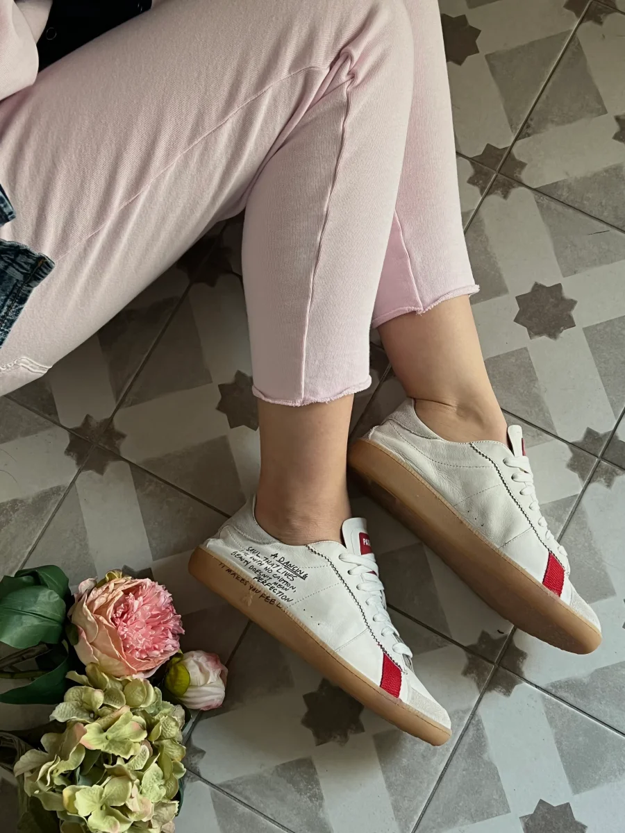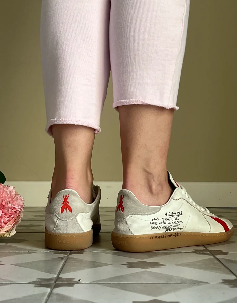 Patrizia Pepe lancia le sneakers SKIN, realizzate in morbida nappa di alta qualitร con lavaggio stone, da indossare senza cautela. Il trattamento unico conferisce un aspetto vissuto: piรน le indossi, piรน diventano belle. I dettagli in suede e gros grain conferiscono glam e ricercatezza. Queste sneakers sono una dichiarazione di libertร e di espressione di sรฉ: rendile parte della tua storia.