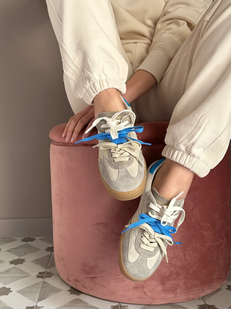 Progettata per la donna che vive la cittร con stile, questa calzatura gioca con i volumi classici del tennis rivisitandoli attraverso un mix materico di pregiato camoscio e pelle martellata. Il dettaglio distintivo? Un gioco creativo di lacci che ti permette di personalizzare il look ogni giorno: puoi indossarli sovrapposti per un tocco di colore audace e dinamico, oppure scegliere il tuo tono preferito per una linea piรน essenziale.