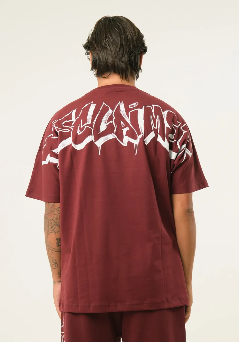 T-shirt con stampa spray posteriore, taglio dritto, mezze maniche, scollo rotondo