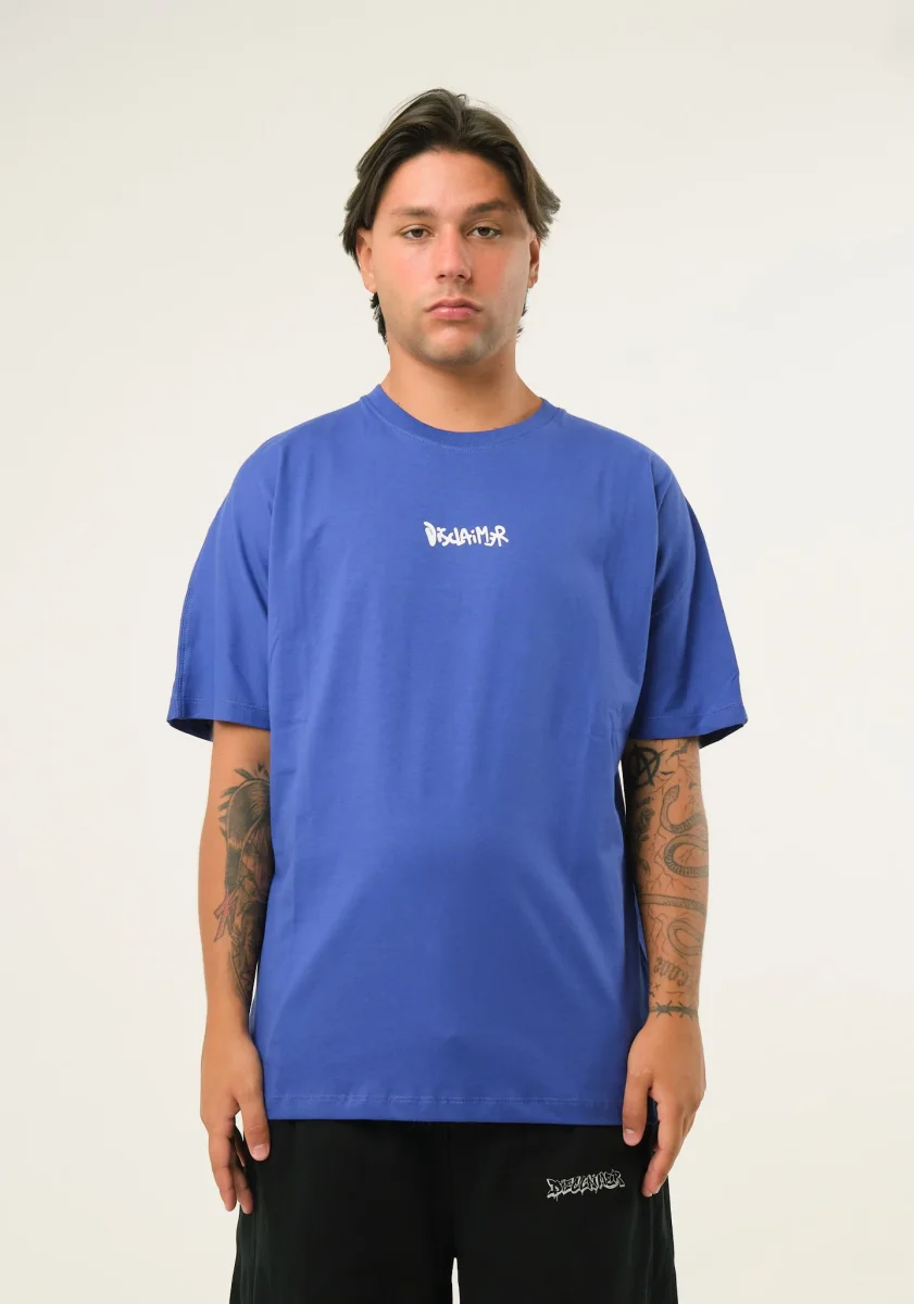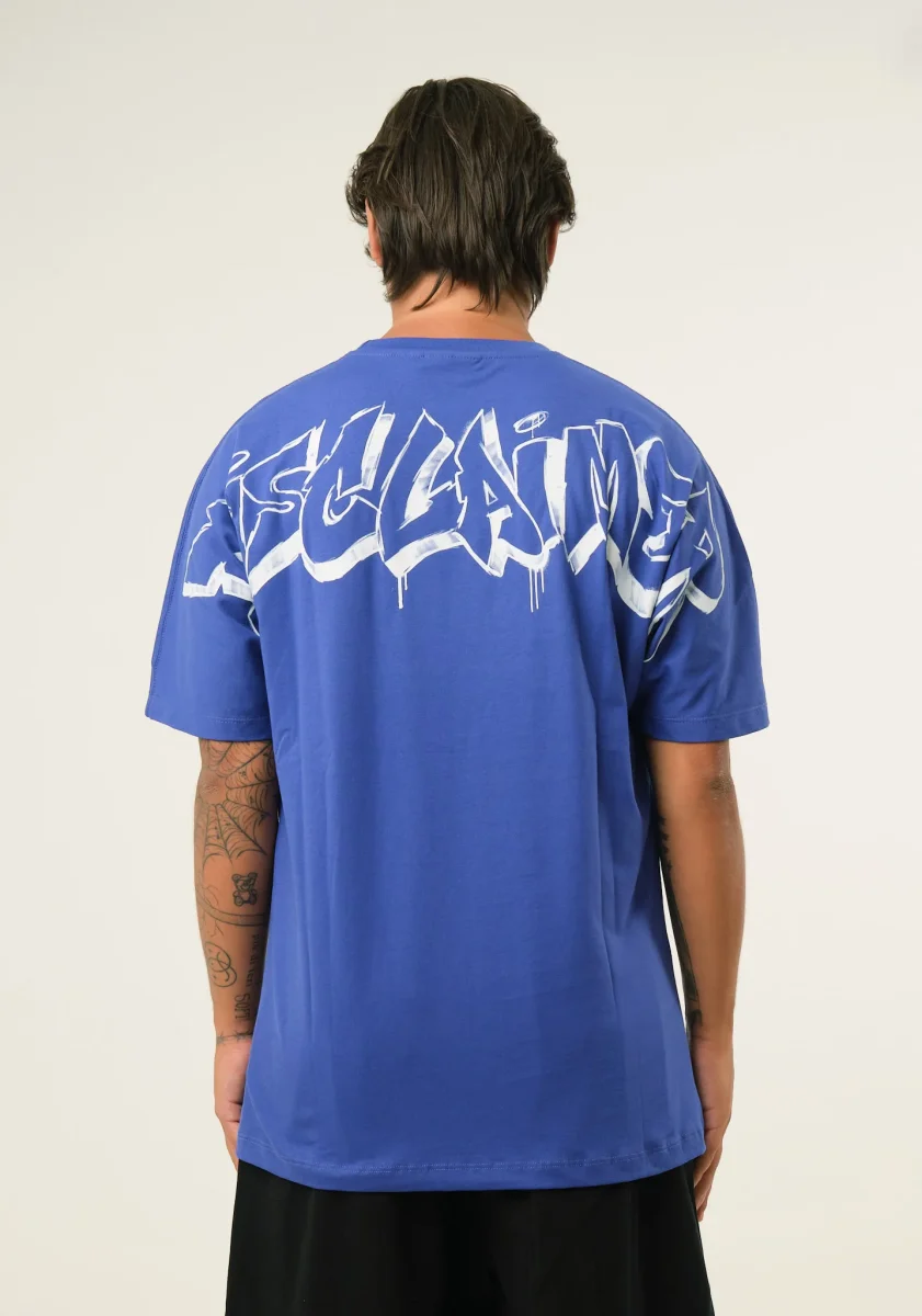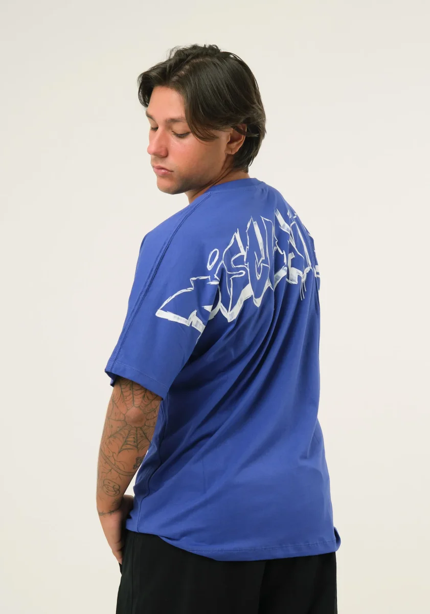 T-shirt con stampa spray posteriore, taglio dritto, mezze maniche, scollo rotondo