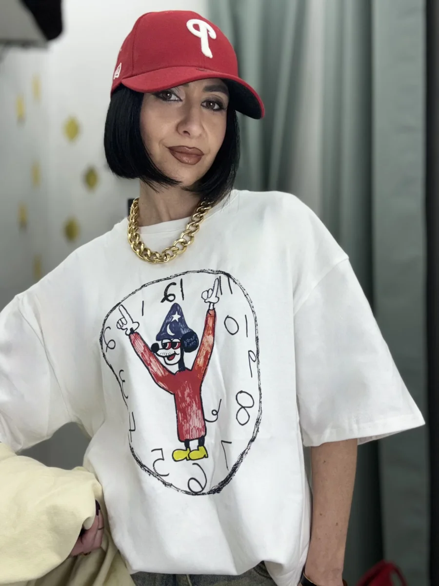 Dai un tocco giocoso e iconico ai tuoi look casual con la t-shirt oversize donna in colore bianco, caratterizzata dalla stampa di Topolino Apprendista Stregone, perfetta per chi ama unire comfort e stile con un dettaglio pop e divertente. Il modello oversize offre massima libertà di movimento e una vestibilità comoda, versatile per diversi outfit. […]