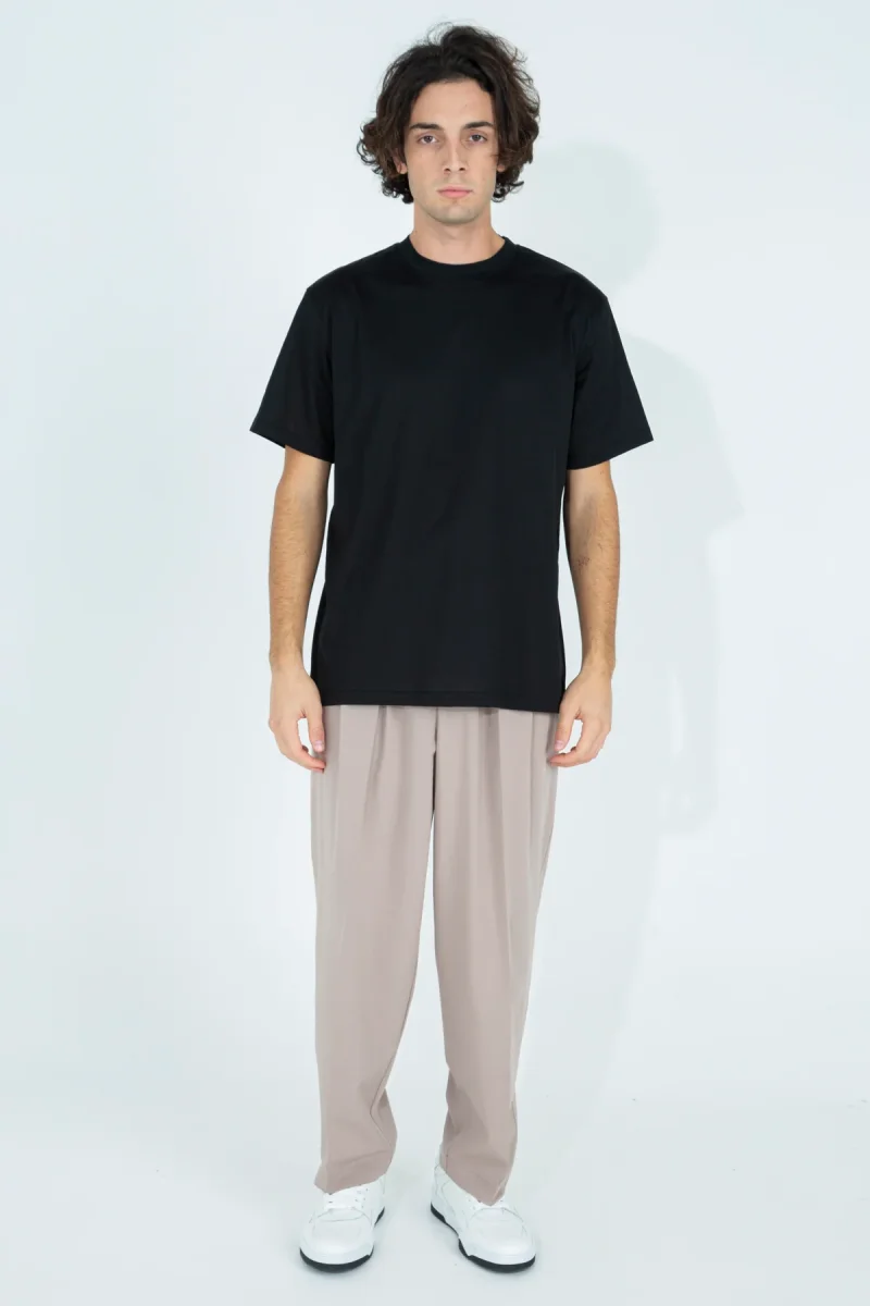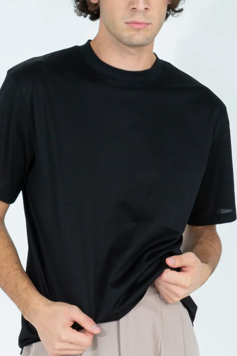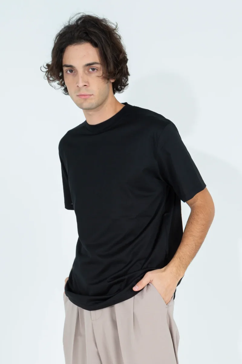 T-shirt in filo di scozia a taglio dritto, girocollo, mezze maniche, maniche corte, orlo dritto. Vestibilitร regolare