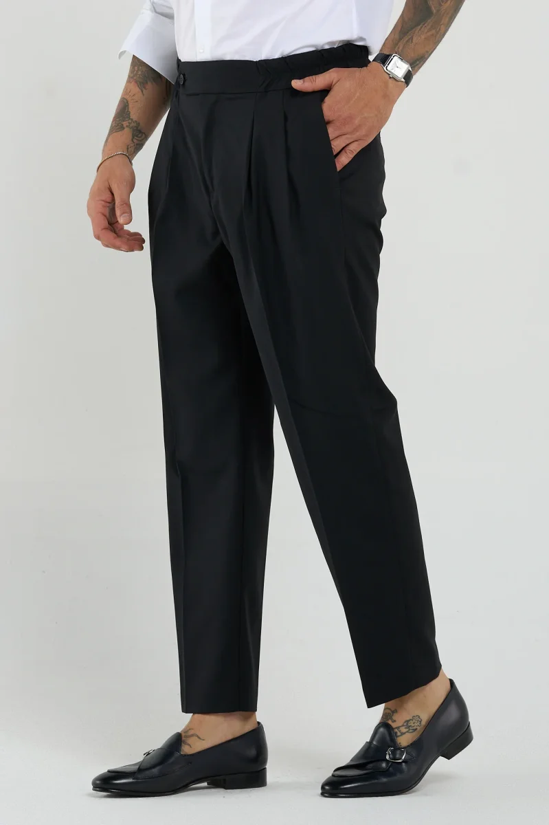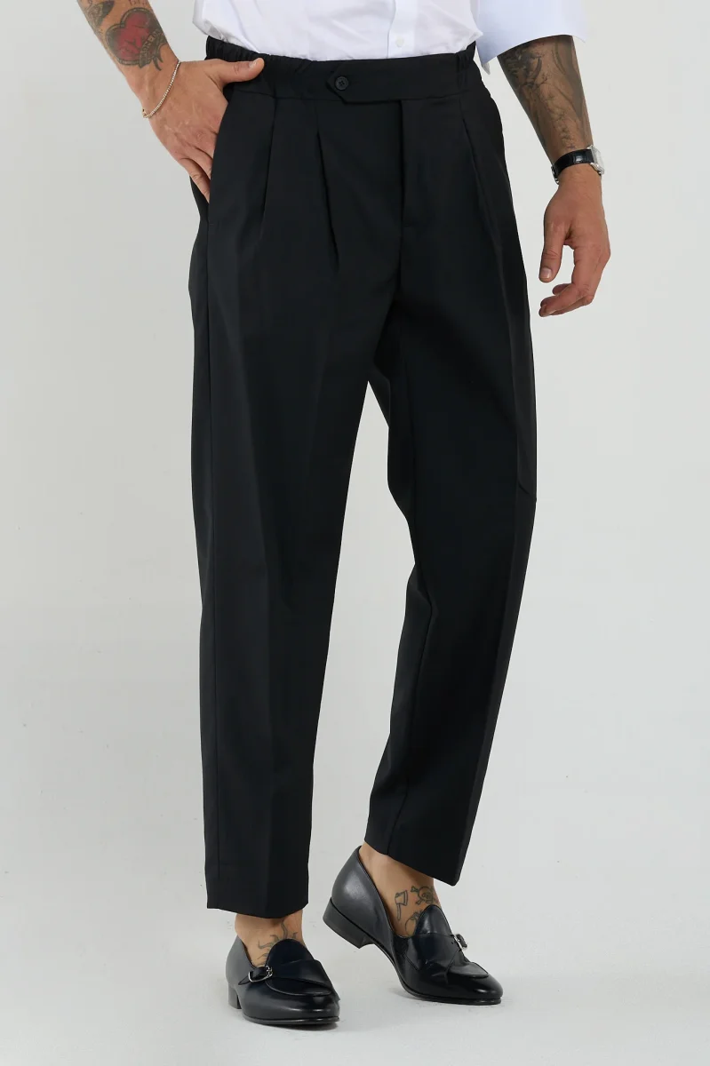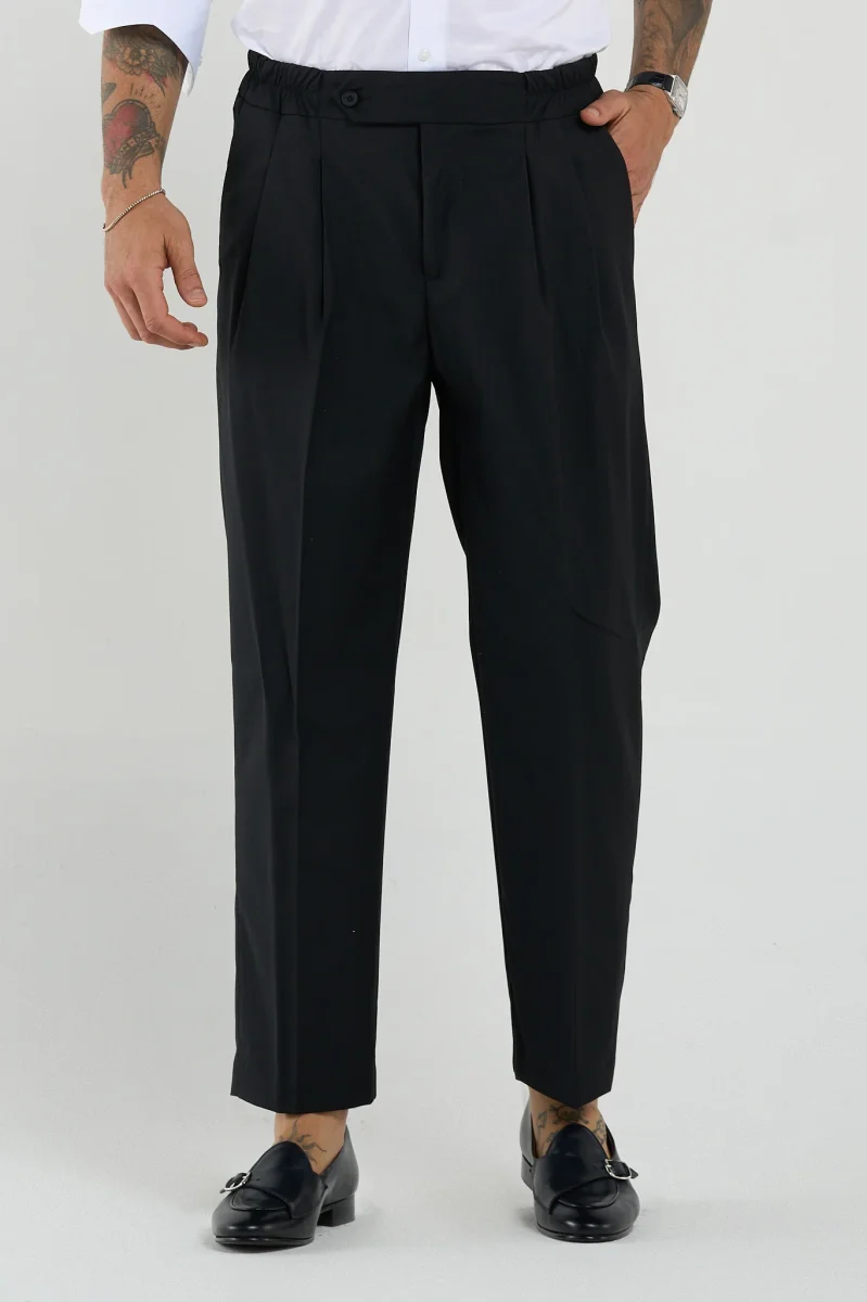 Questi pantaloni rappresentano lโequilibrio ideale tra comfort dinamico e raffinatezza sartoriale, perfetti per chi viaggia spesso o desidera un capo versatile per il lavoro e il tempo libero. Taglio morbido e affusolato, con pinces frontali che donano volume e movimento alla parte superiore, mantenendo una linea pulita sulla gamba. La fascia posteriore completamente elasticizzata, invisibile frontalmente, che assicura comfort anche durante lunghi spostamenti o sedute prolungate (in aereo, treno, auto).