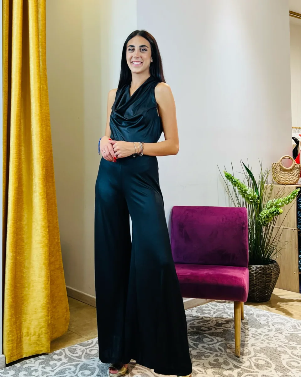 Tuta “Ebon Elegance”. Tuta elegante con pantaloni palazzo in jersey. (copia)