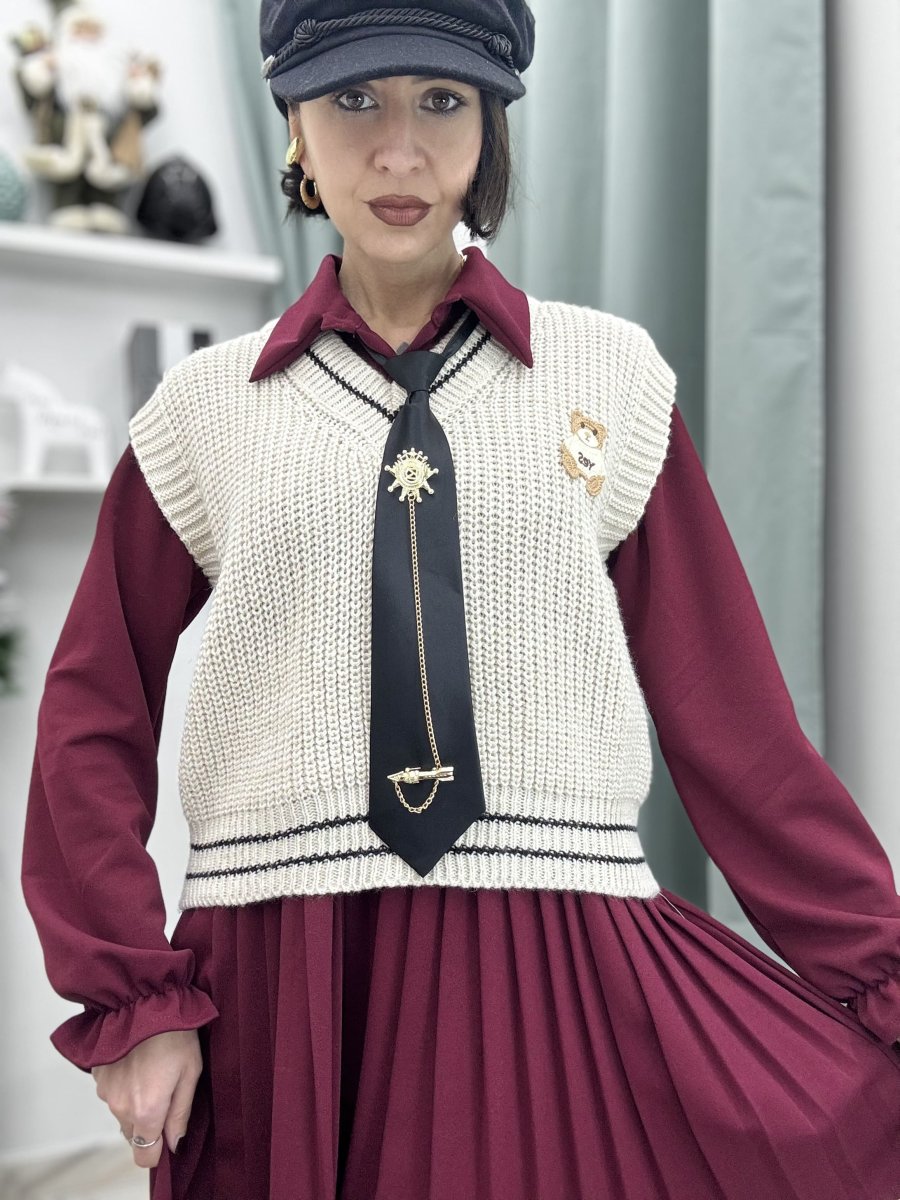 Disponibile nelle eleganti varianti colore nero (in arrivo), bordeaux, marrone, beige e panna, รจ un capo perfetto per chi cerca un abito originale, confortevole e di tendenza.