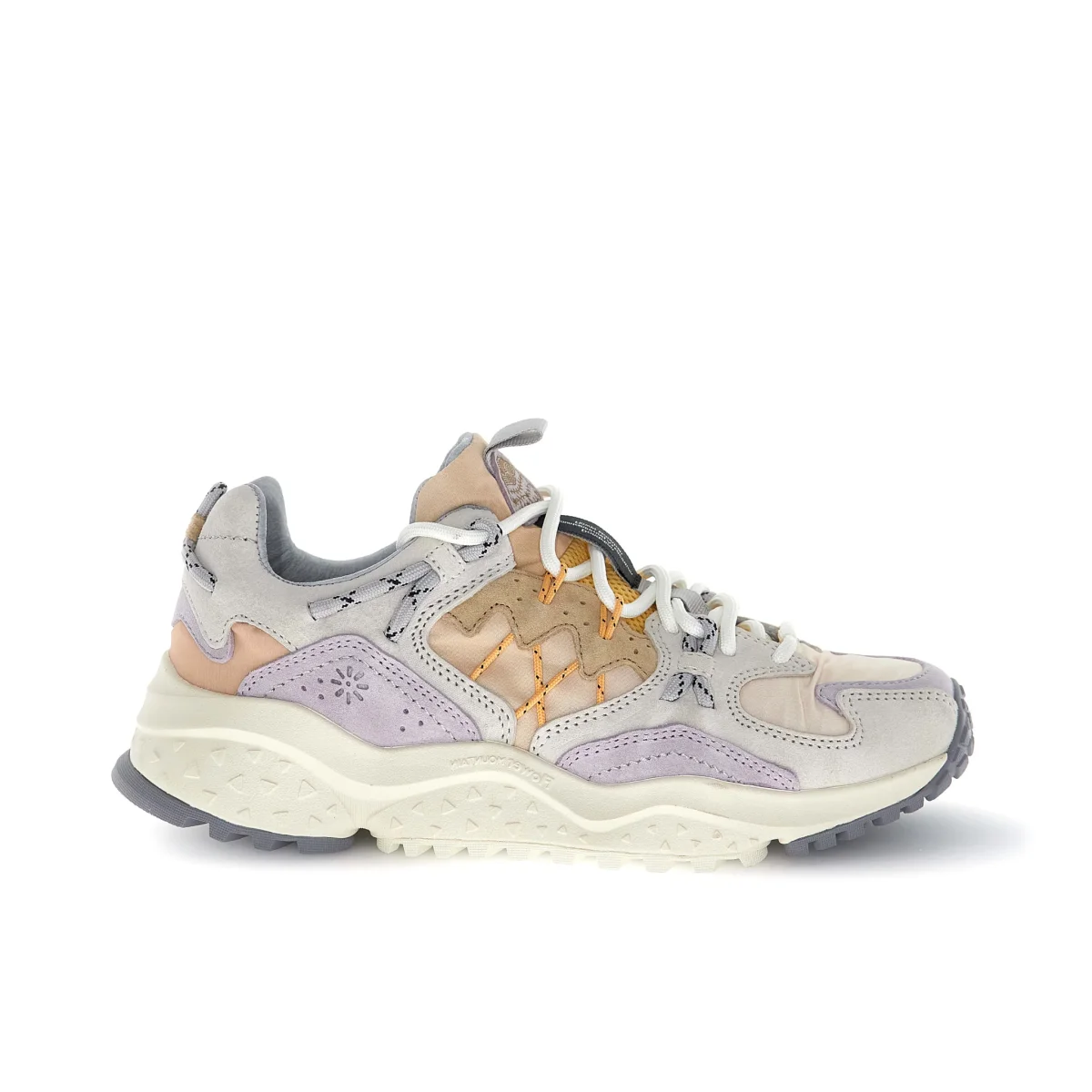 Sneakers in suede e tessuto. Chiusura con lacci, soletta sughero, fodera pelle e tessuto.