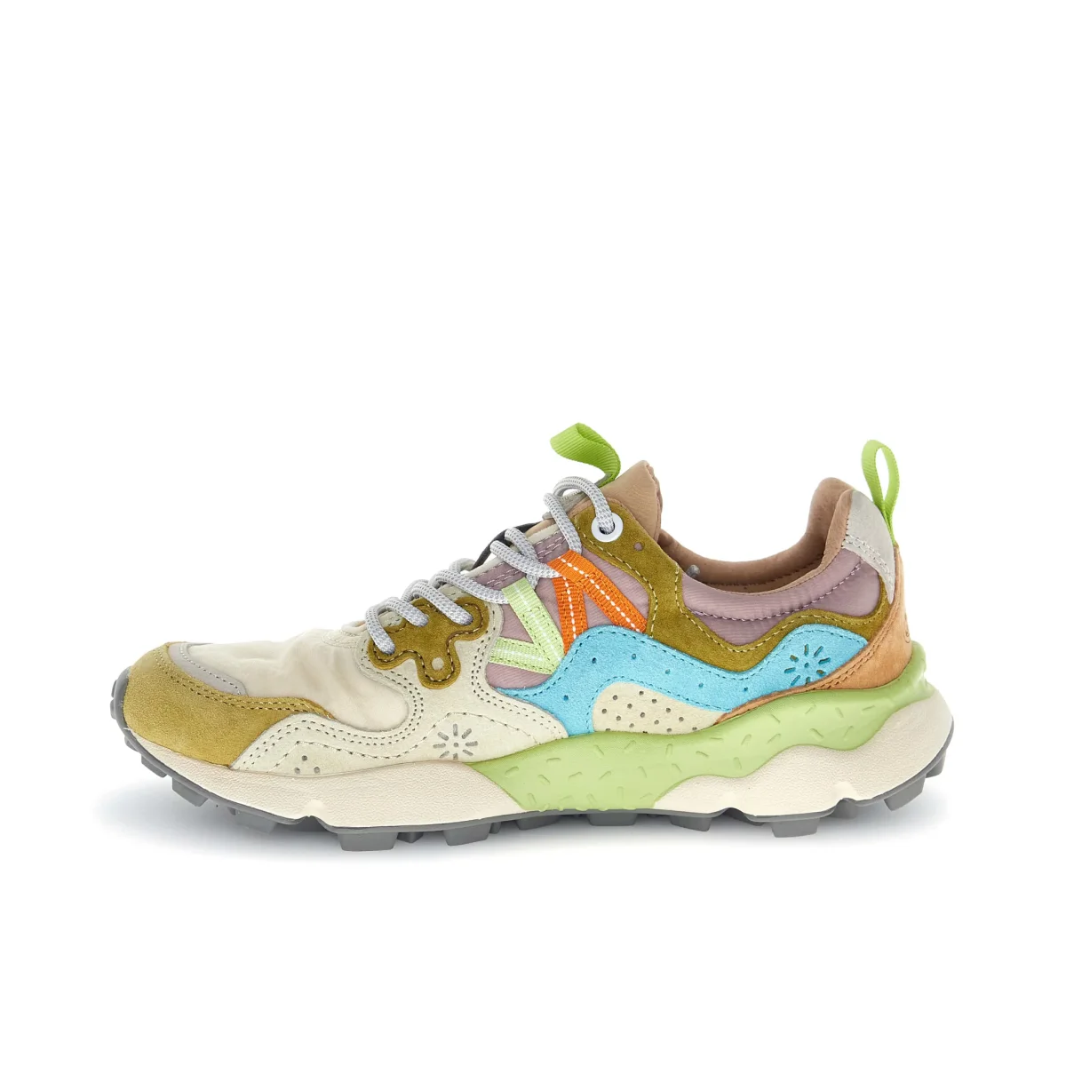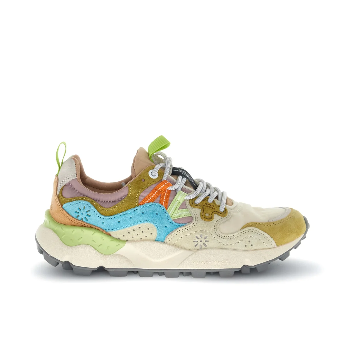 YAMANO 3 Sneaker in tessuto tecnico e suede, con occhielli rinforzati, lacci trekking, soletta interna in sughero anatomica e antibatterica. Suola in gomma ultraleggera con battistrada dentellato. Dettagli:– Tomaia in suede e tessuto tecnico– Motivo con fantasia a fiori sulla tomaia– Linguetta logata con tirante in tessuto– Chiusura con lacci– Occhielli dalla forma sagomata– Iconico […]